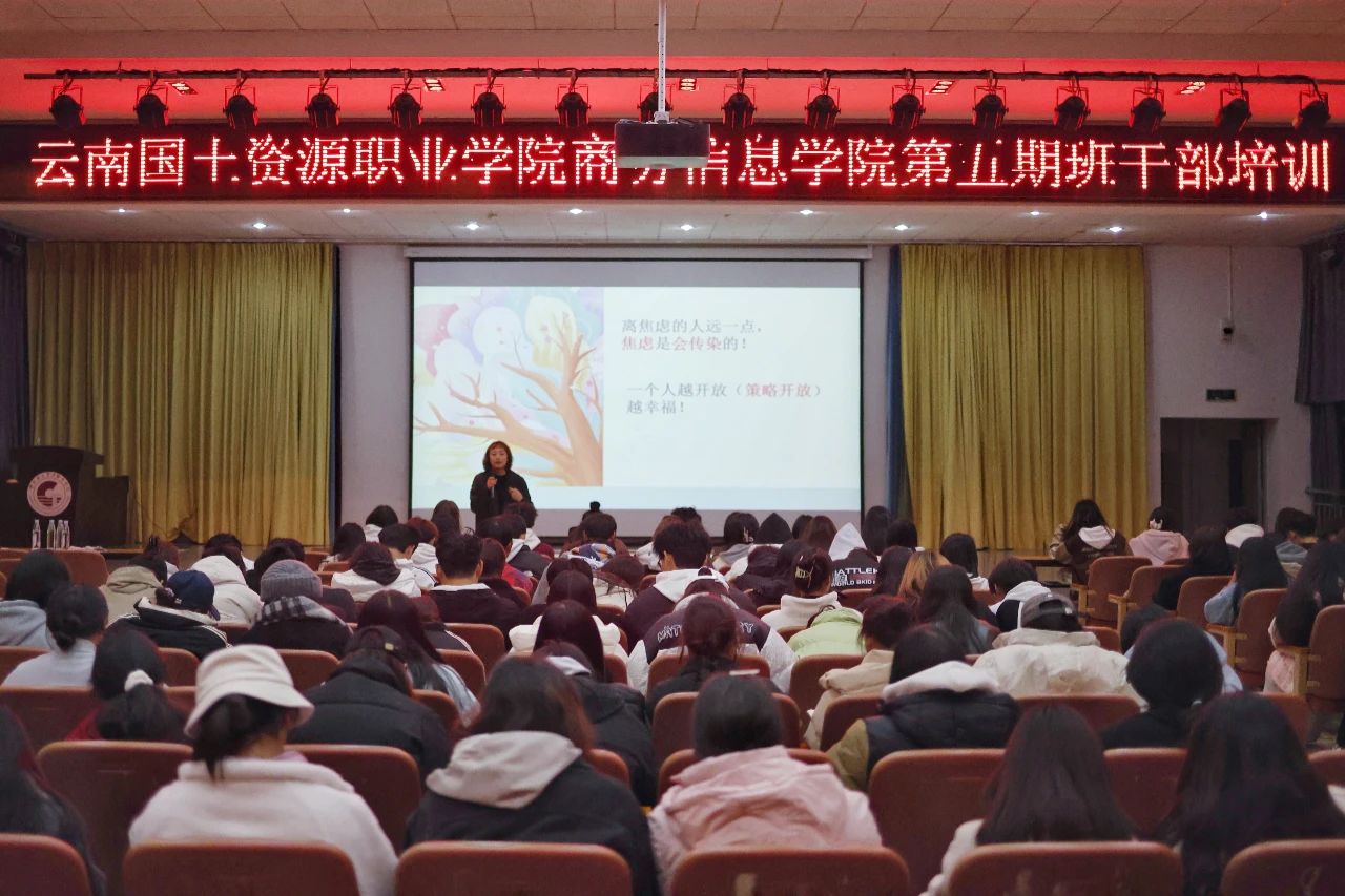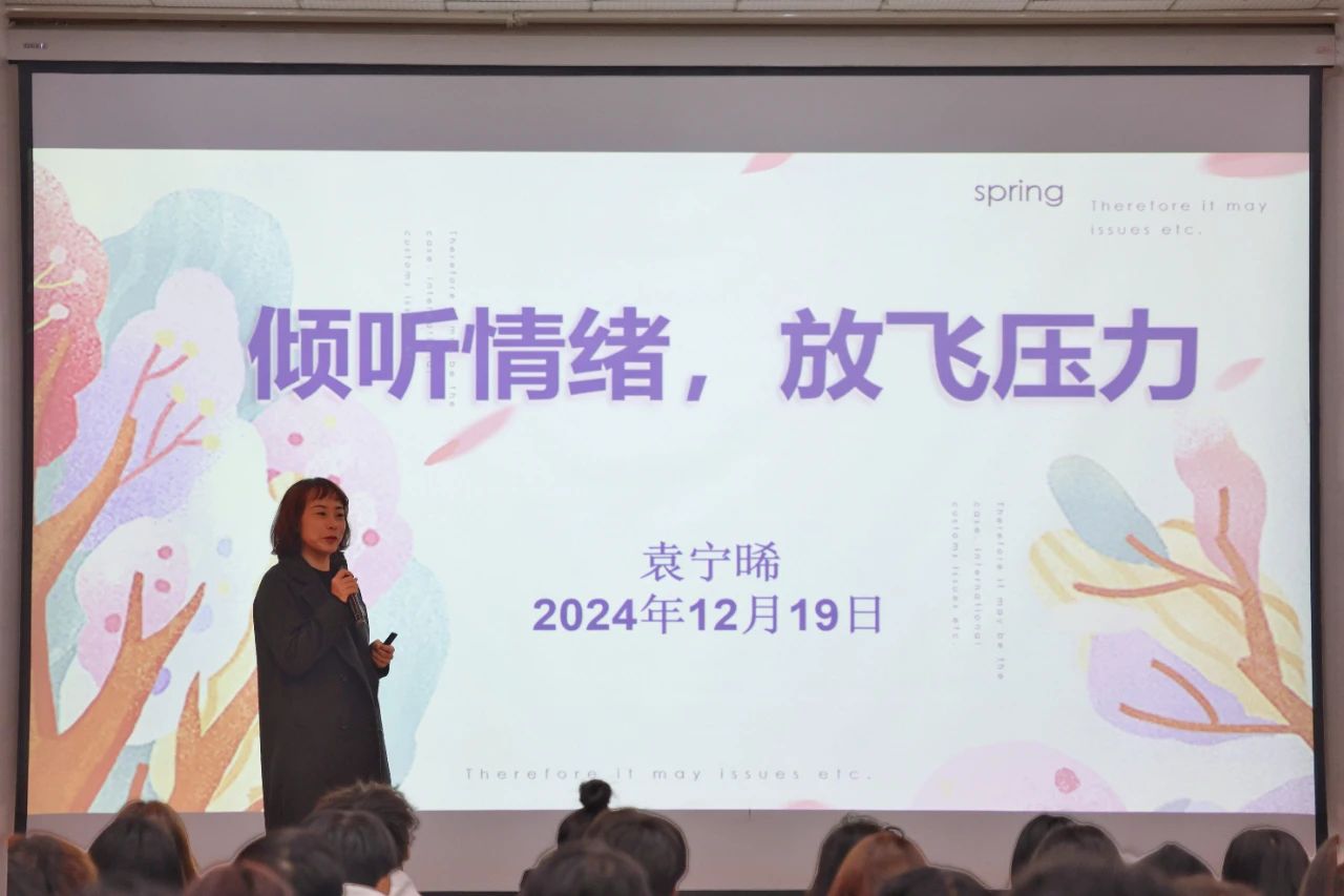 12月19日晚,太阳成tyc122cc第五期员工干部培训第四讲在图科楼B305报告厅如期举行。此次讲座特别邀请到昆明工业职业技术公司心理中心主任袁宁晞副教授作为主讲嘉宾,以“倾听情绪,放飞压力”为主题,为员工干部们带来一场别开生面且极具意义的心理知识盛宴。