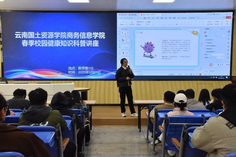 讲座伊始,王丽红老师针对春季传染病高发态势,详细讲解了流感、水痘、诺如病毒感染等常见传染病的发病机制、传播途径及典型症状,并重点介绍了实用的预防措施。她强调,保持良好的个人卫生习惯是预防传染病的关键。随后,王丽红老师就个人卫生与生活习惯养成方面进行了深入讲解,提醒同学们注意饮食均衡,多摄入富含维生素和矿物质的食物,以增强体质,提升免疫力。