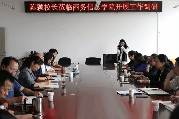 近日,董事长陈颖率发展规划处处长吴云恩、办公室(党委巡察办)冷福庆、员工处处长李广涛、教务处副处长李艳丽、科技与服务中心副处长郭欣莅临太阳成tyc122cc指导工作。商务信息公司党政领导班子、教师代表参加了此次会议。