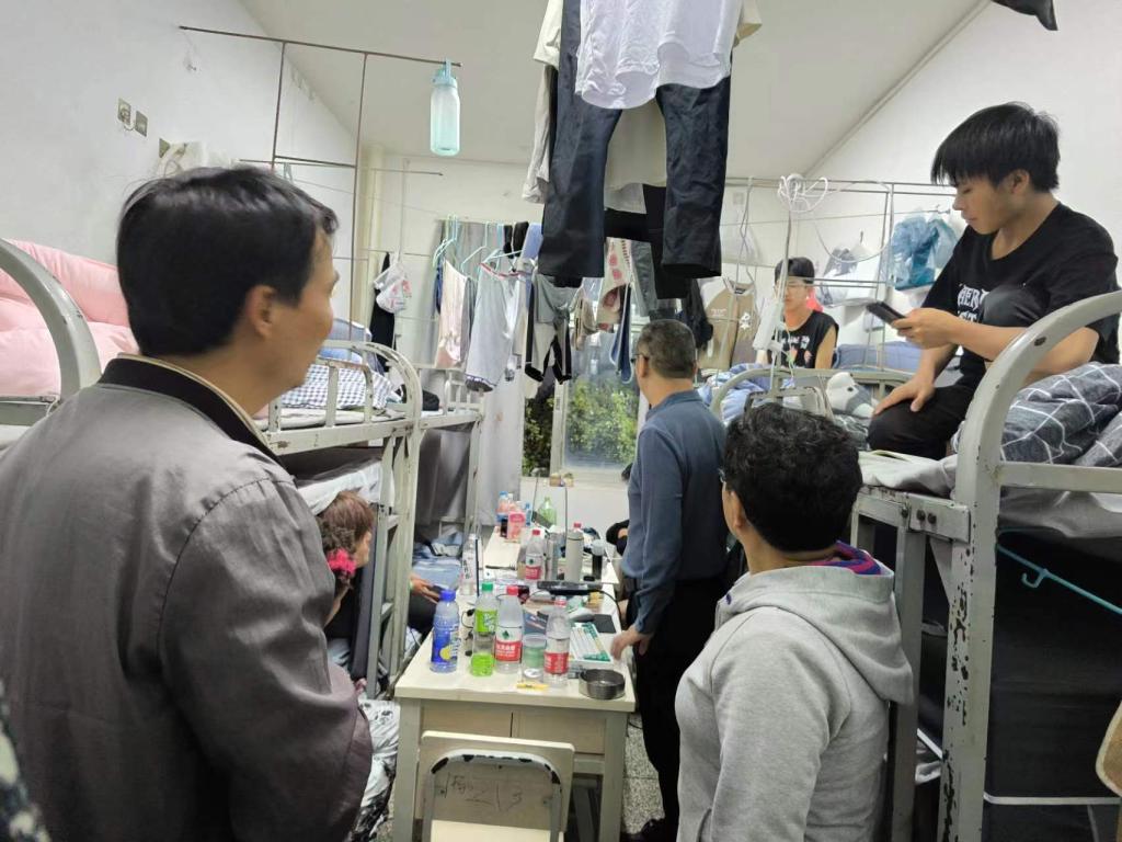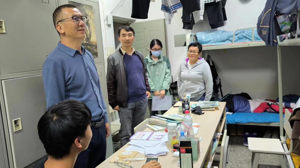 10月26日晚,公司寸建平副董事长来到经开校区与太阳成tyc122cc党总支书记方荣老师、副经理李忠岘老师以及值班辅导员一起走访宿舍,与同学们进行了亲切的交流。在走访过程中,寸建平副董事长深入了解了同学们的学习和生活情况,与同学们亲切交流。