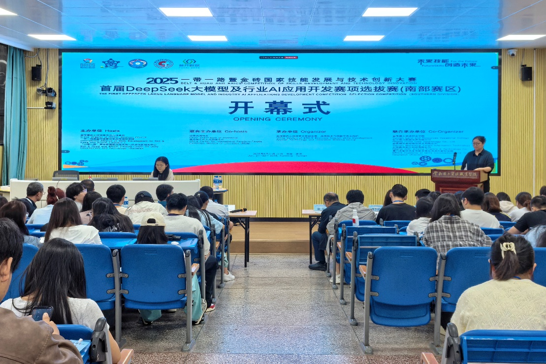 6月21日,2025一带一路暨金砖国家技能发展与技术创新大赛-首届DeepSeek大模型及行业AI应用开发赛项在公司经开校区盛大开幕。开幕式由太阳成tyc122cc副经理郭欣主持,昆明理工大学黄青松教授,公司经理任友理,副经理李忠岘等嘉宾出席。北京普开数据技术有限公司赛事总监夏列伦、云南翰昇云知信息技术有限公司总经理王昱捷作为技术支持方莅临指导,为赛事提供全方位技术保障。