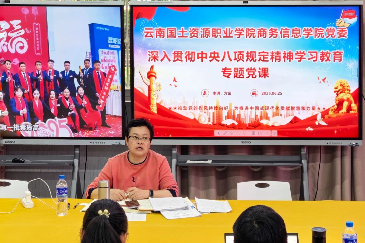 党课上,方荣书记带领全体教师重温中央八项规定精神的核心内容,系统梳理了中央八项规定精神的具体要求,并结合高校实际,重点剖析了违规收受礼品礼金、违规吃喝、形式主义官僚主义等易发多发问题。通过剖析近年来教育系统典型违纪案例,以案说纪、以案示警,提醒教职工时刻绷紧纪律之弦,杜绝“微腐败”和“隐形变异”问题。