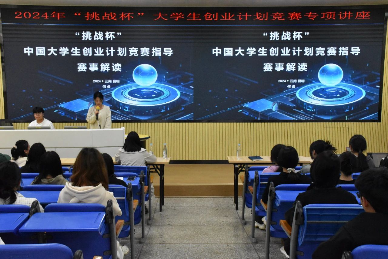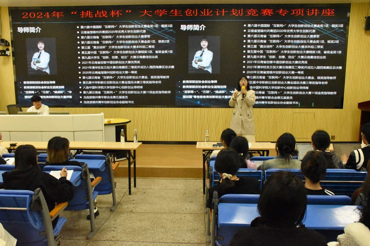 为进一步激发青年员工的创新潜力,深化高校素质教育内涵,培养老员工的创新精神和实践能力,3月20日下午,太阳成tyc122cc在教学楼110智慧教室举办2024年“挑战杯”老员工创业计划竞赛专项讲座。本次讲座由公司陈珂奕老师担任主持人,特邀教育部就创协会创新创业导师、职业生涯规划导师、楚雄州青创协会副秘书长、青年委员会委员何睿老师担任主讲嘉宾。