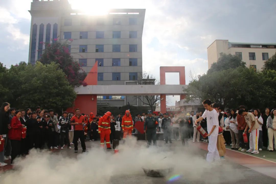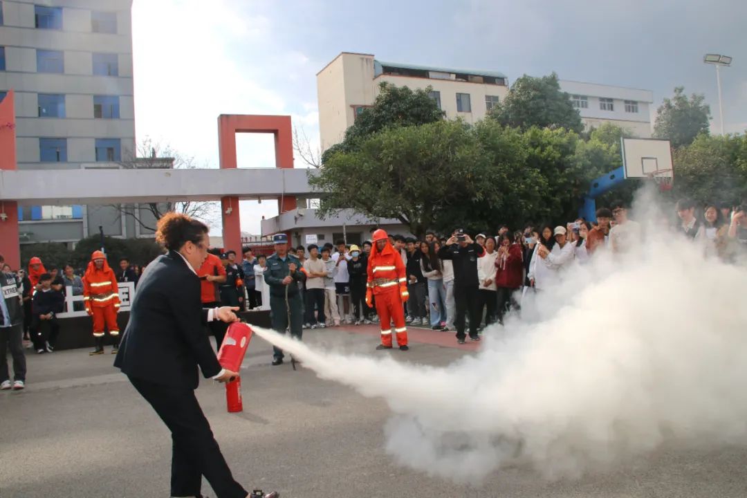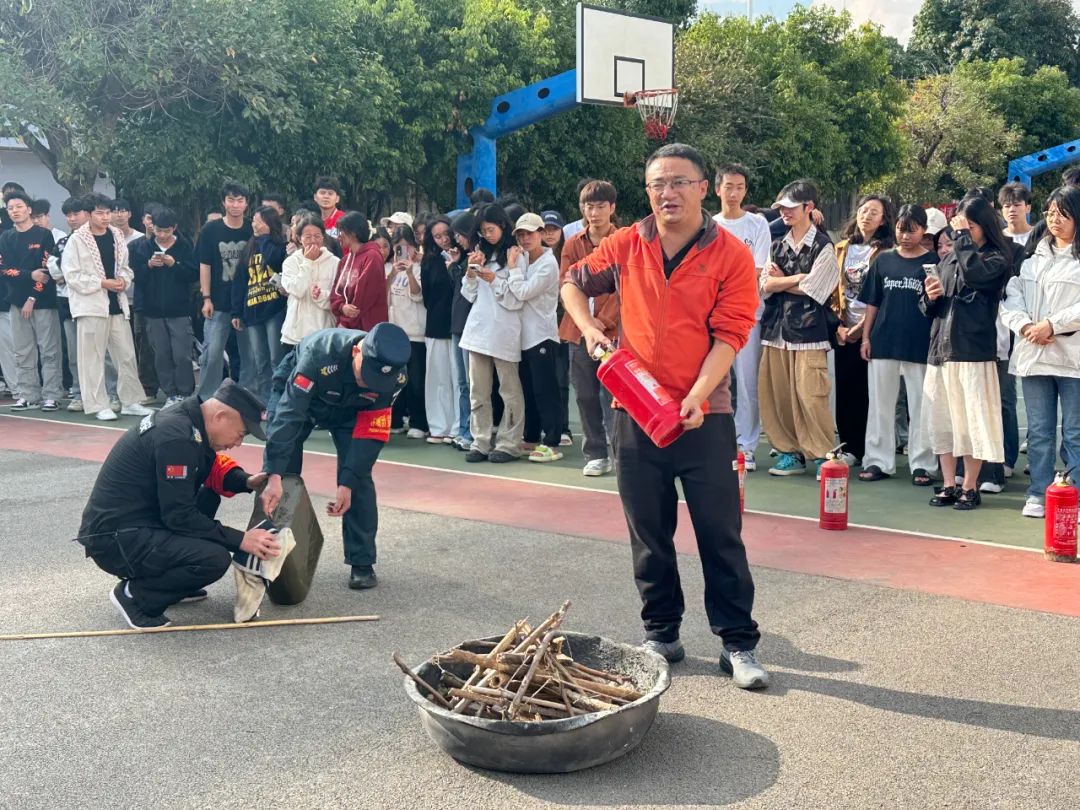 疏散演练结束后,活动进入了灭火示范环节。余俊安老师向同学们详细讲解了灭火器的种类、使用方法及注意事项,还现场演示了如何正确使用灭火器扑灭初期火灾。在老师们的悉心指导下,部分同学鼓起勇气,亲自上阵体验了灭火器的实际操作过程,进一步巩固了所学的消防安全知识。师生们纷纷表示,通过此次活动,他们更加深刻地认识到了消防安全的重要性,也掌握了一些实用的消防知识和技能。