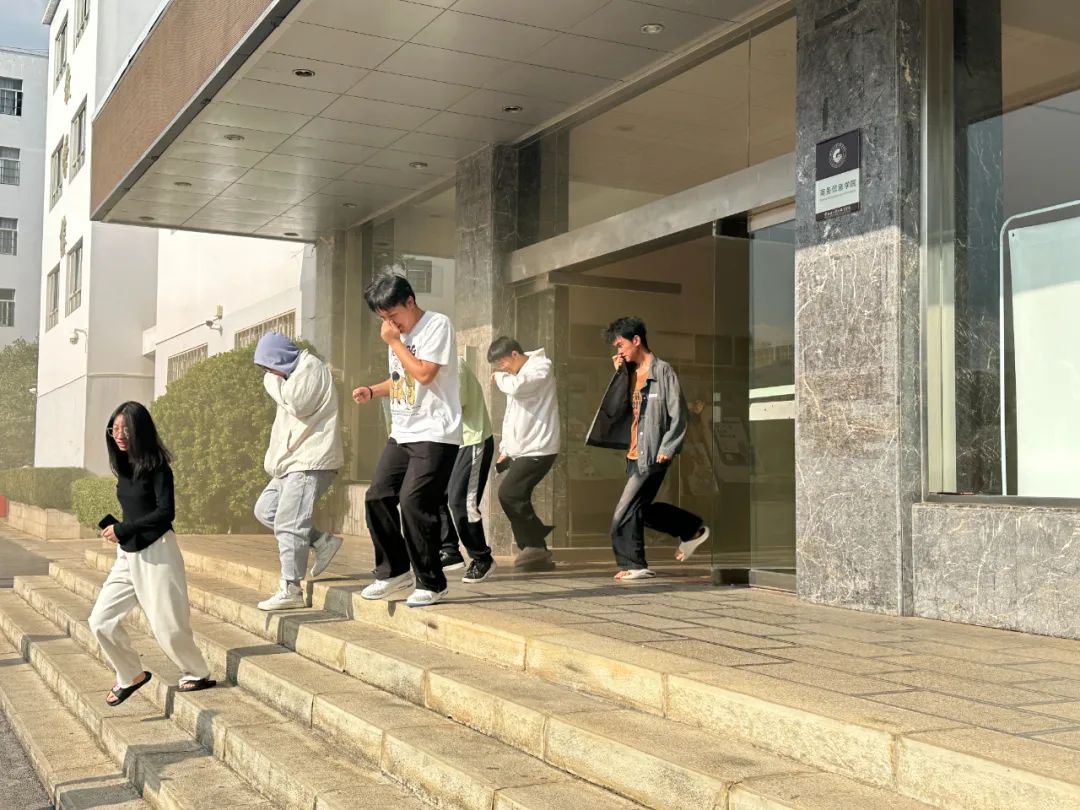 活动在紧张而有序的氛围中拉开帷幕。第一阶段,余俊安老师以生动的案例和详实的数据,向师生们详细讲解了火灾的隐患及预防措施,强调了消防安全的重要性。随后,同学们迅速进入应急状态,按照预先制定的疏散路线,低头弯腰、捂住口鼻,快速而有序地从教学楼撤离至安全地带。整个疏散过程紧张而不慌乱,充分展现了师生们良好的应急反应能力和团队协作精神。