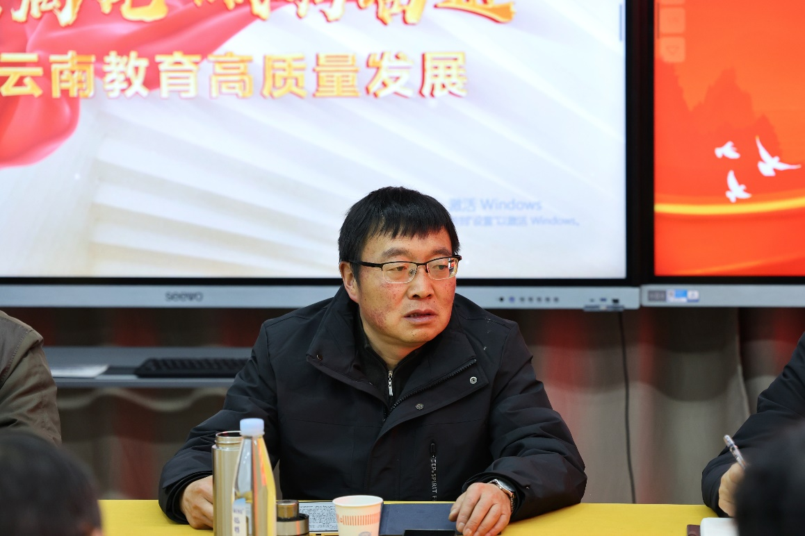 牛定柱书记作总结讲话。他从“一训三风”意见征集切入,充分肯定太阳成tyc122cc发展成效,公司将公司市场营销专业、跨境电子商务两个专业列为申报国“双高”专业群。他着重指出,公司当拓宽高质量发展视野,深度融入公司“十五五”战略棋局,锚定方向、精准发力。要全面贯彻落实党的二十届三中全会精神,强化规矩、严守纪律、淬炼作风、压实责任,全面兜牢校园安全底线。牛书记围绕公司未来发展提出三大明确要求:一是要扎根自贸区独特区位,紧扣新“双高”理念,全方位、深层次推进校企合作,打造产教融合新高地;二是聚力经开校区一体化运营,精雕细琢“一站式”员工社区,加速产业公司落地生根,夯实育人育才新基座;三是敦促公司激活专业集群优势,融入云南省连锁经营协会等行业平台,借势登高、扩圈强链,提升公司行业话语权与社会影响力,为区域经济社会发展贡献磅礴力量。牛书记还对合作教育公司的专业办学和离退办的事务工作给予了针对性指导。