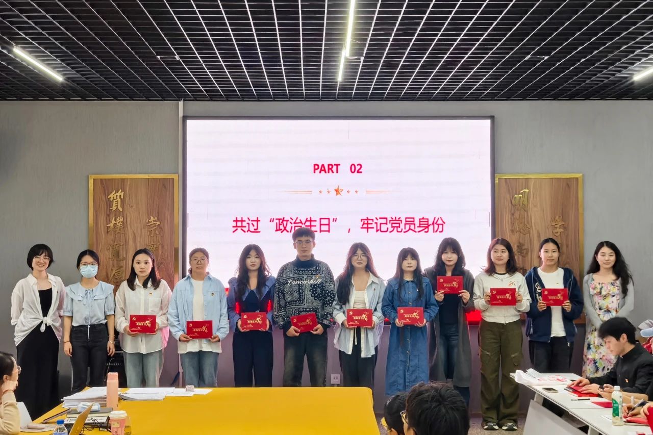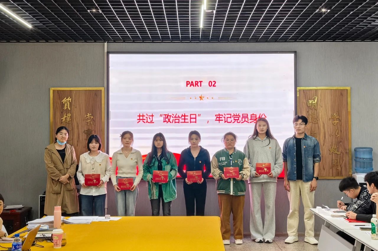 随后,党支部为2022级毕业生党员和2023级预备党员过集体政治生日。在庄重而温馨的氛围中,教师党员为员工党员们赠送了政治生日贺卡。一张张贺卡承载着党组织对党员的深深祝福与殷切期望,激励着党员们时刻牢记入党初心,践行党员使命。收到贺卡的员工党员们纷纷表示,政治生日是一次深刻的党性教育,让他们更加坚定了为党的事业奋斗终身的决心。