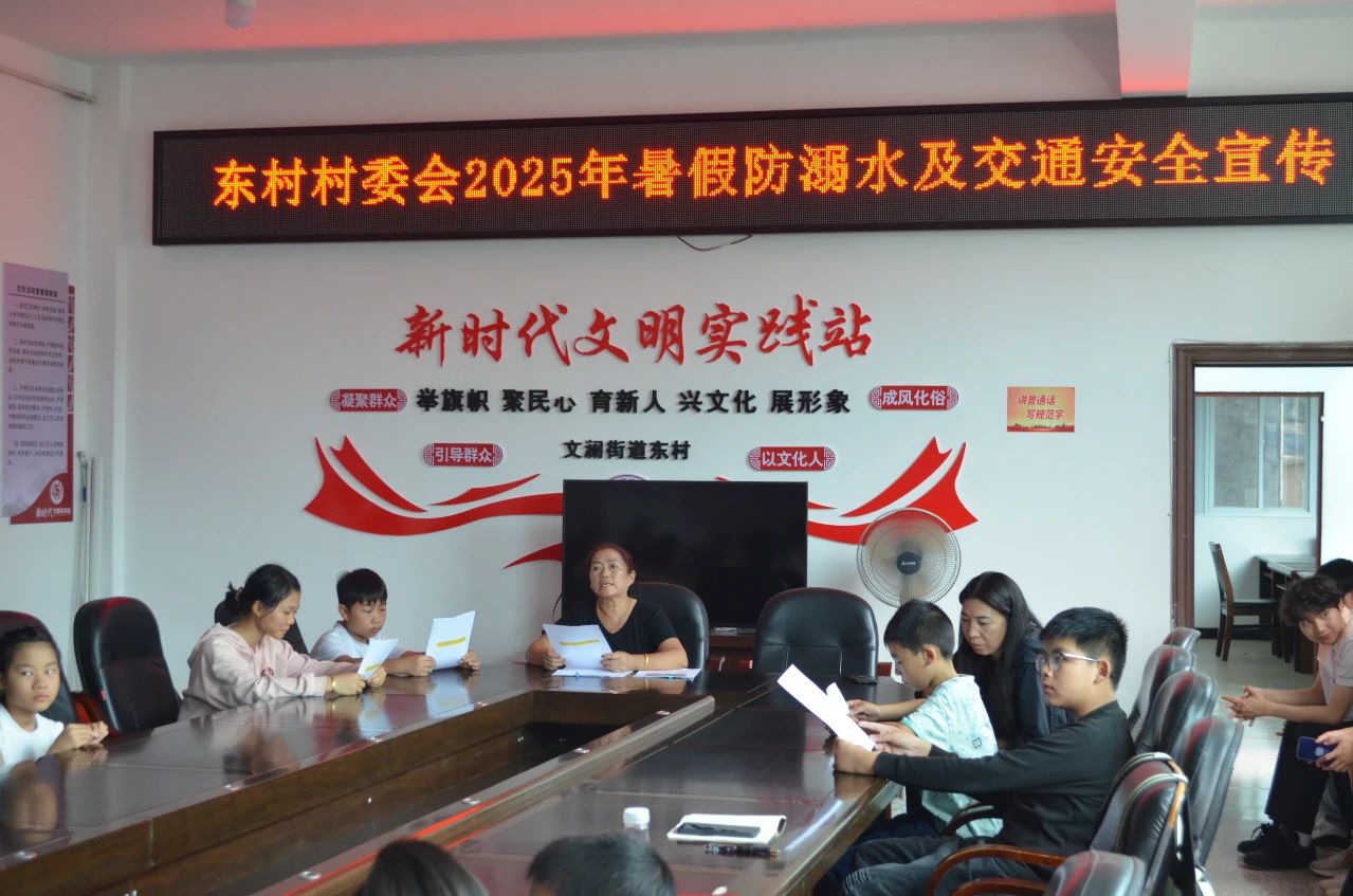 下午15点,实践团联合东村马丽红副主任开展学龄儿童防溺水安全教育。马主任介绍了当地水文环境及连月降雨导致地质灾害频发的情况,队员们则强调了暑期涉水安全要点及自救措施,以提升家长和孩童的安全意识。