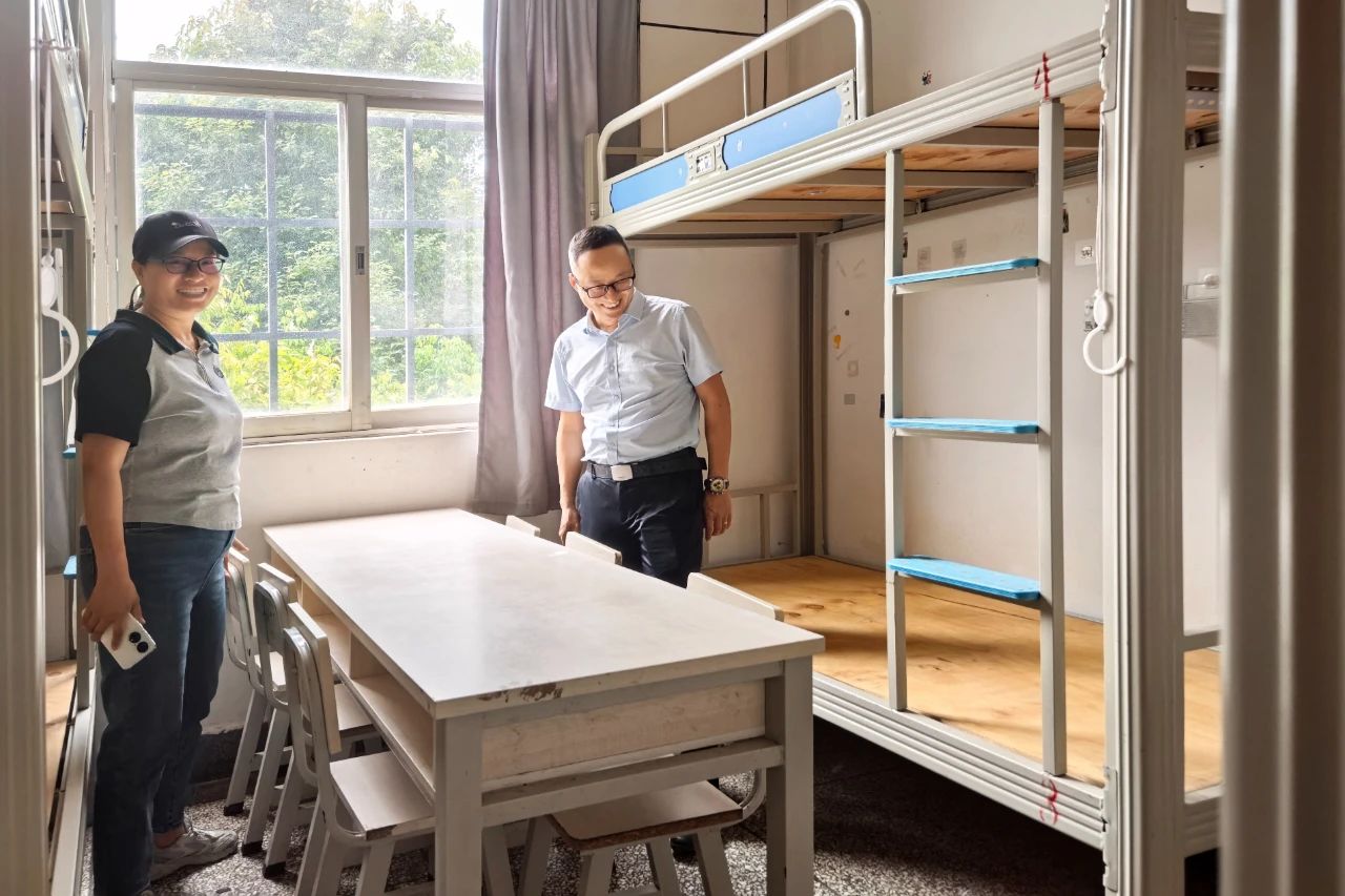 本次检查分为四组同步进行。重点排查教学实训场所、员工宿舍、食堂等区域的安全隐患,对消防设施、用电安全、设备存放等逐一检查,及时排查可能存在的安全隐患,记录上报,确保假期校园基础设施安全运行;同时深入员工宿舍,走访了解目前还未离校的员工生活学习情况,针对性开展防诈骗、交通安全等假期安全提醒,并协调解决员工实际需求。