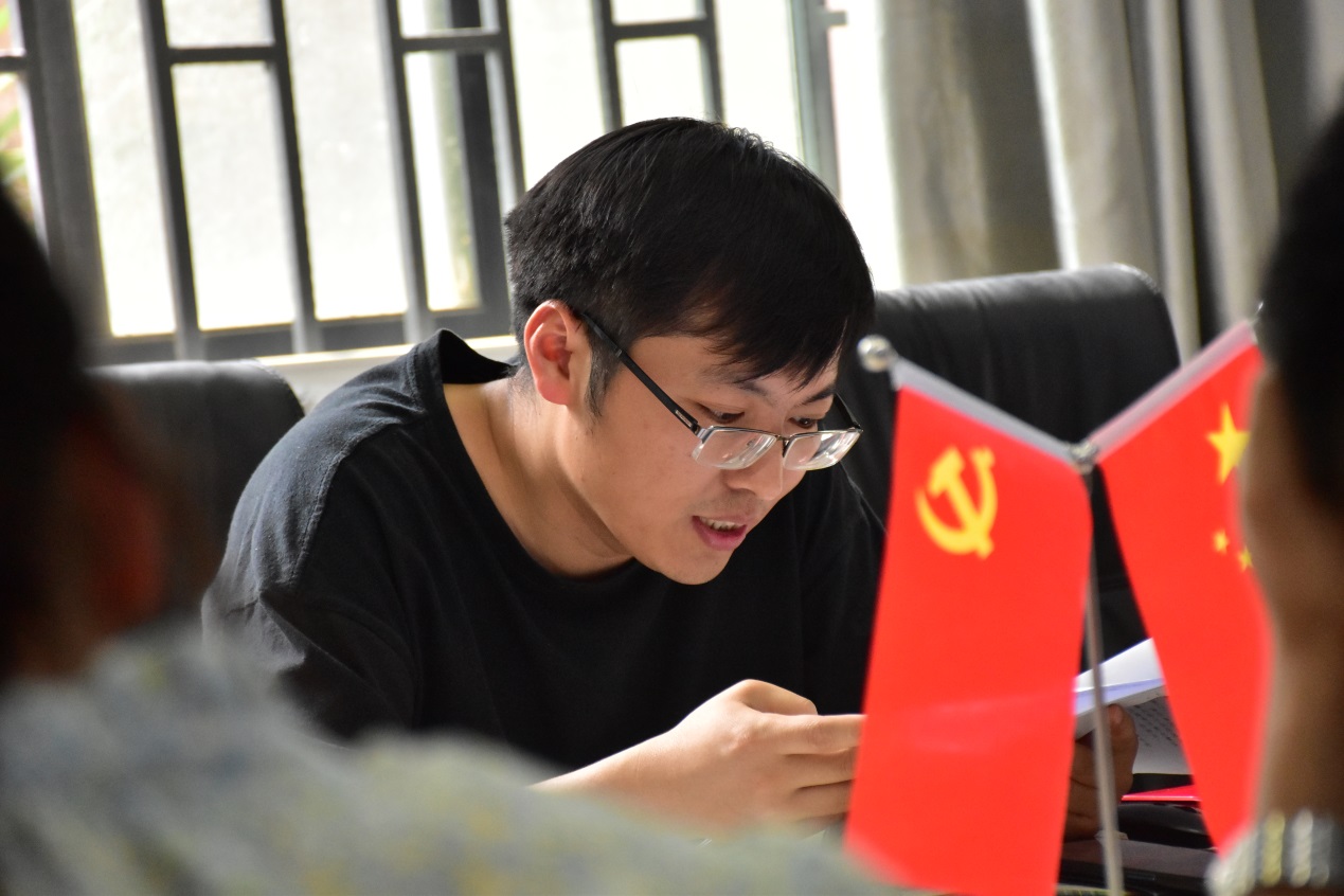 党总支宣传委员陆俊汕结合“习近平总书记赴福建考察调研时的重要讲话”、“习近平2021年4月25日至27日在广西考察的行程及其重要讲话”进行领学。陆俊汕结合习近平总书记两省考察的重要讲话中“论文写在田野上”、“优秀传统文化”、“人民健康”、“乡村振兴”、“创新不问‘出身’”、“青年一代责任在肩”等高频词汇和金句分享了个人学习心得,并推荐了参考学习的文献资料。
