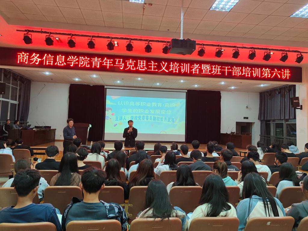 为了让同学们认识到高等职业教育以及高职员工的职业发展定位,商务信息院于2023年11月6日在图科楼B305开展了由公司党委委员副董事长齐武福主讲的“高等职业教育以及高职员工的职业发展定位”主题讲座。