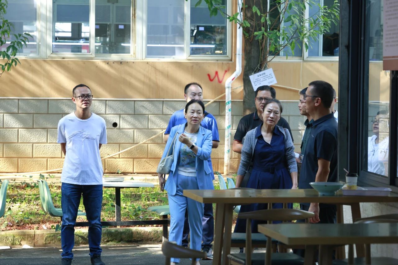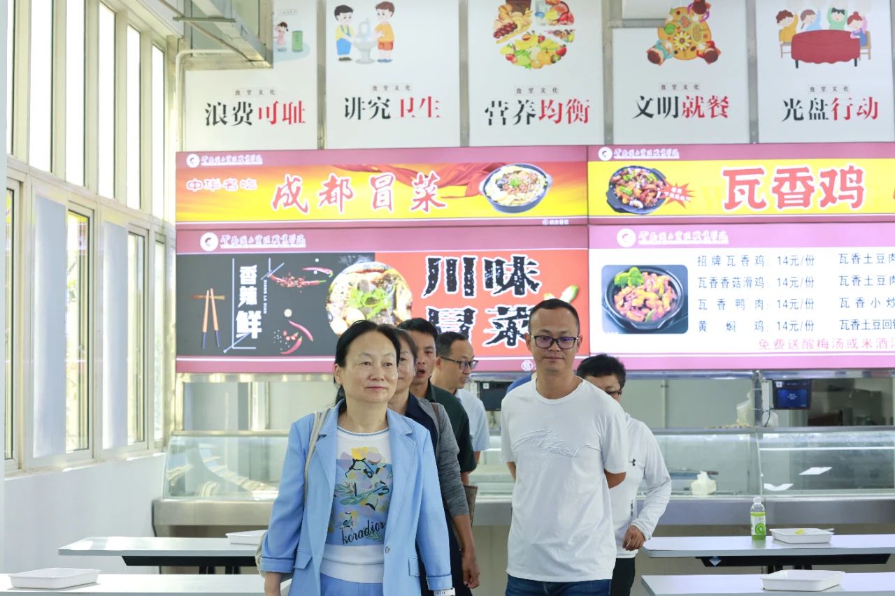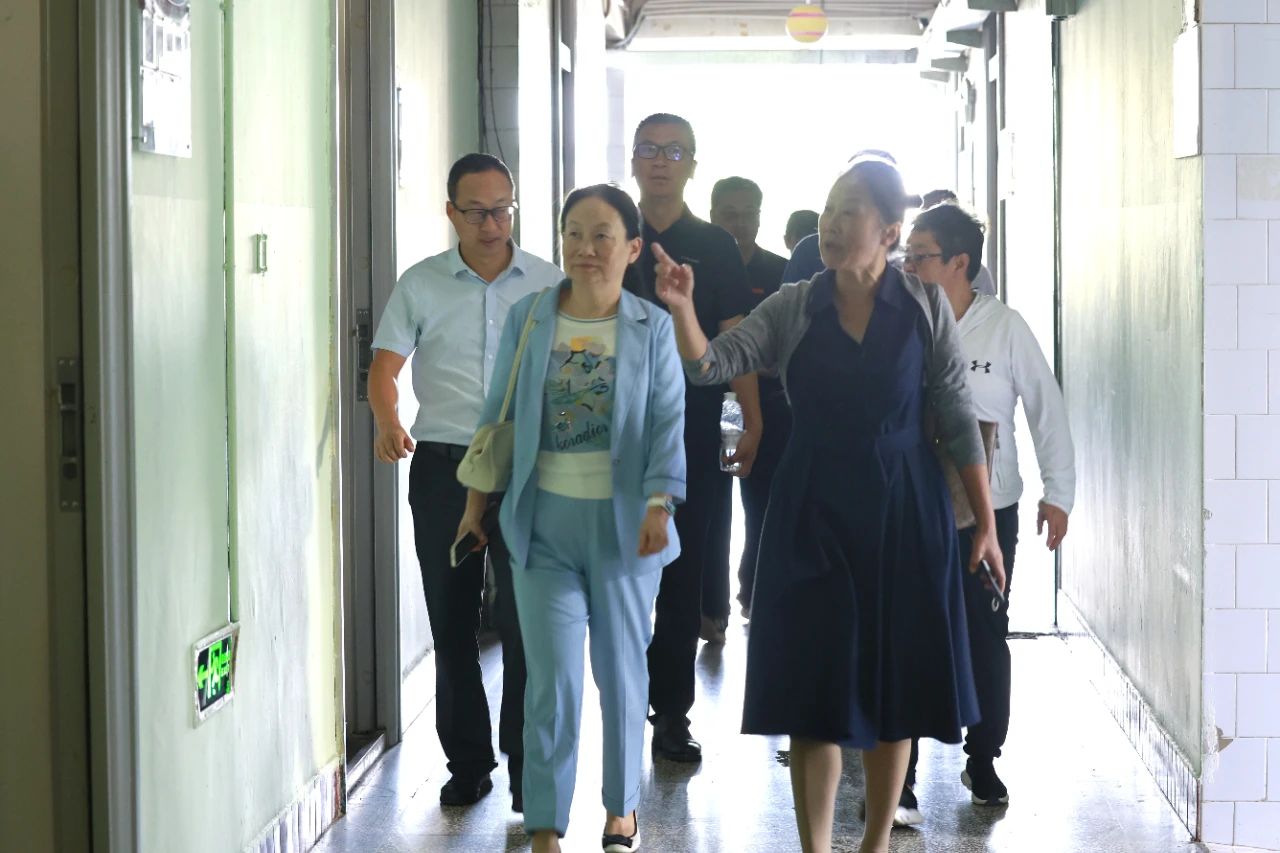 随后,检查组到教学楼、图书科技楼、食堂、运动场、员工宿舍1栋等重要场所查看维修改造情况,并对明湖社区绘臻苑片区“一站式”建设进行了交流。每到一处,陈董事长都仔细查看设施设备功能运行状况,询问运行中的难点与解决方案,强调一切要以服务好员工为中心,为员工的正常学习和生活创造更为便利的条件。