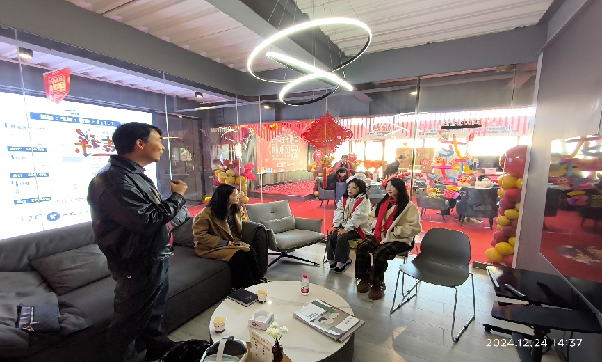 抵达公司后,李老师一行首先与在中住装饰实习的员工们进行了面对面座谈。李老师关切地询问了每一位员工的实习内容、所面临的工作挑战、薪资待遇、住宿与饮食条件等。此外,他还特别关心员工们个人毕业论文的完成情况,鼓励大家多向企业内指导老师请教,将实习实践与学术研究紧密结合,努力提升自我。对于员工们的未来发展规划,李老师同样给予了高度的关注,并耐心听取了他们在实习过程中遇到的难题和需要公司协助解决的问题。李老师对员工们寄予厚望,鼓励大家继续发扬勤奋拼搏的精神,勇敢迎接挑战,为实现个人梦想不懈努力。