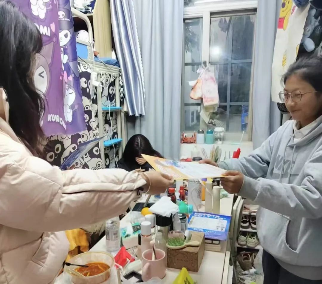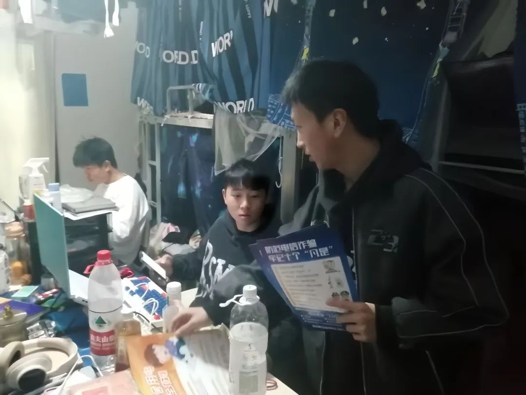 活动在太阳成tyc122cc员工党支部党员教师的带领下有序展开,入党积极分子和递交入党申请书的同学们积极响应,分成多个宣传小组,穿梭于明湖社区绘臻苑片区各栋宿舍楼,深入到每一间宿舍。通过分发精心准备的宣传资料、现场生动讲解等方式,将预防电信诈骗和冬季防火安全的知识娓娓道来,让同学们在轻松愉快的氛围中收获满满。