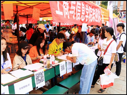 阴天没有晴日的明朗,却依然明亮,早上7点半公司开始在迎新点布置迎新帐篷,准备迎接新生。横幅、院旗、报名流程图、公司详情介绍图等等都向新生展示了工商与信息公司的新风貌、新朝气。18级学长学姐身着院服,或举着公司牌子,或穿梭在校园的各个角落,随时为有需要的新生或家长提供帮助,带领新生到公司接待处报到、寻找宿舍、食堂等,让他们能够顺利的完成入学报到。