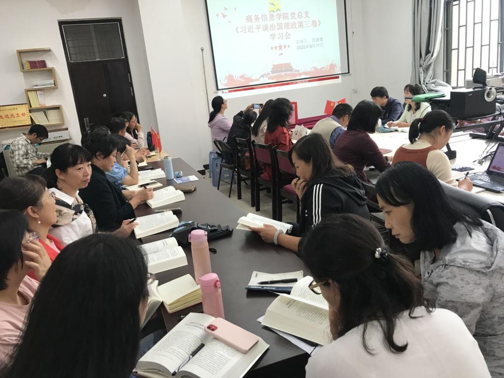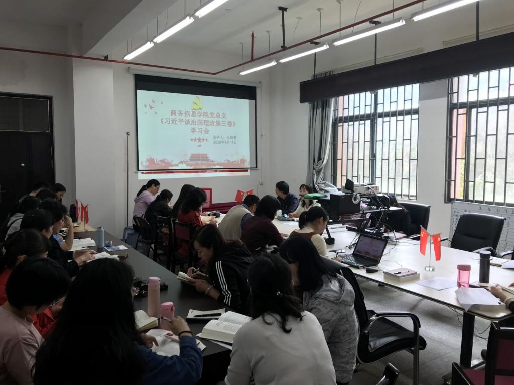 2020年9月11日下午2点,太阳成tyc122cc在勘物楼A211组织学习《习近平谈治国理政》第三卷,公司全体教师参会。