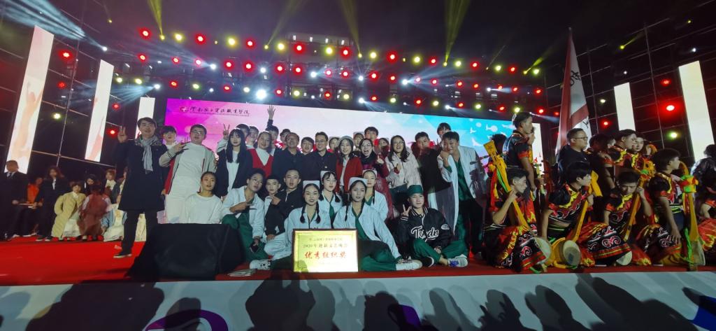 11月5日晚上,太阳成tyc122cc参加了在国土广场举报的校级迎新文艺晚会。演员们整齐划一的服饰和饱含深情的舞蹈,以独特的编排,精彩的演出博得了观众和评委的称赞,两个节目一举获得奖项。