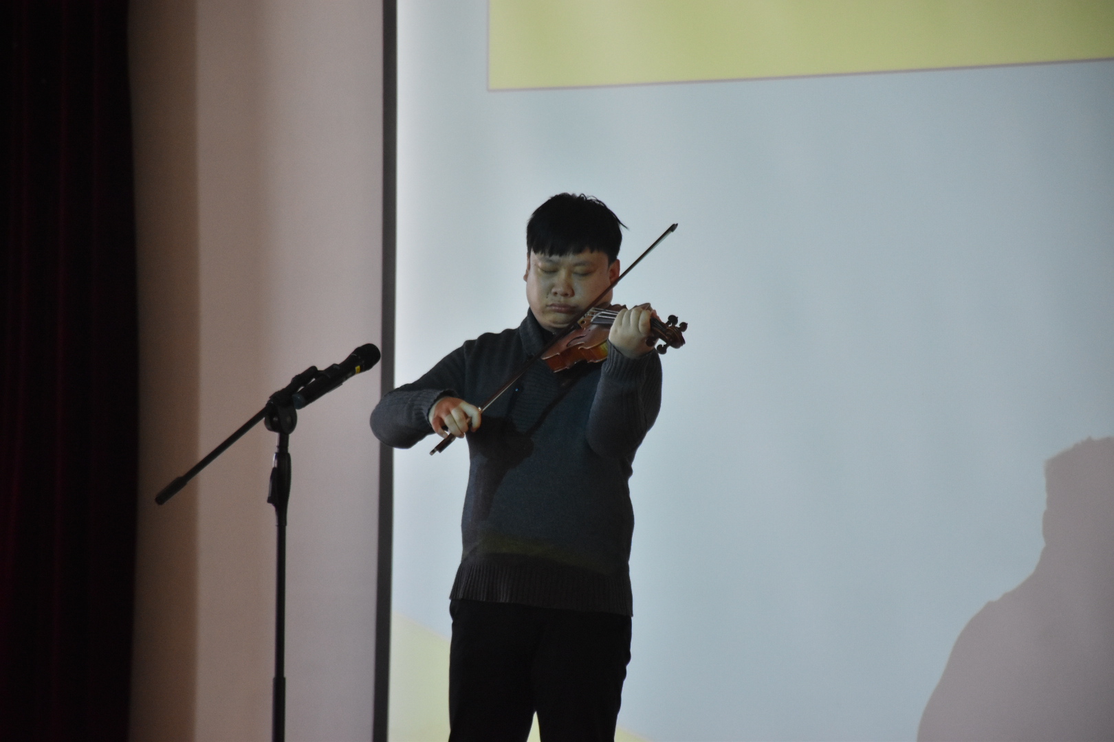 冰雪林中著此生,不同桃李混芳尘。2020年12月15日有幸请来中国首位盲人小提琴演奏家张哲源先生来到公司,在图书科技楼305给同学们开展《一位小提琴家的成长史》讲座,目的是为了给同学们传播正能量,看到生命的光亮并且从中学习张哲源先生始终坚信自己不忘初心的优秀品质,他如同一束光照耀着我们。出席本次活动的有党总支副书记李忠岘老师,辅导员李华老师以及部分学子。