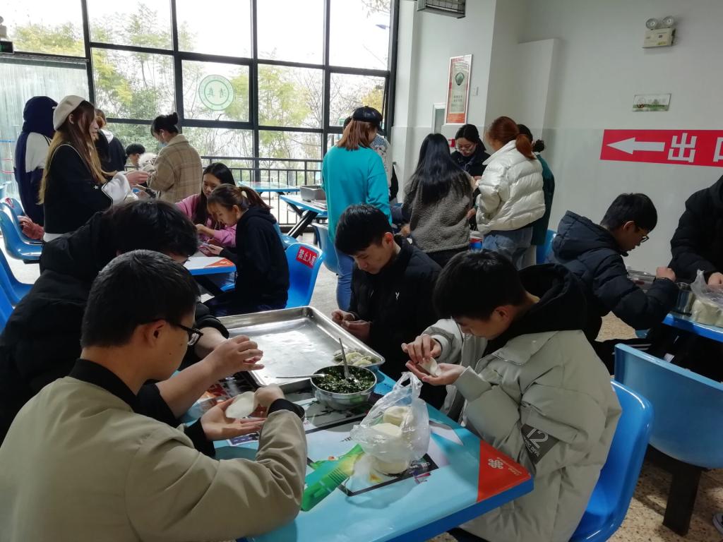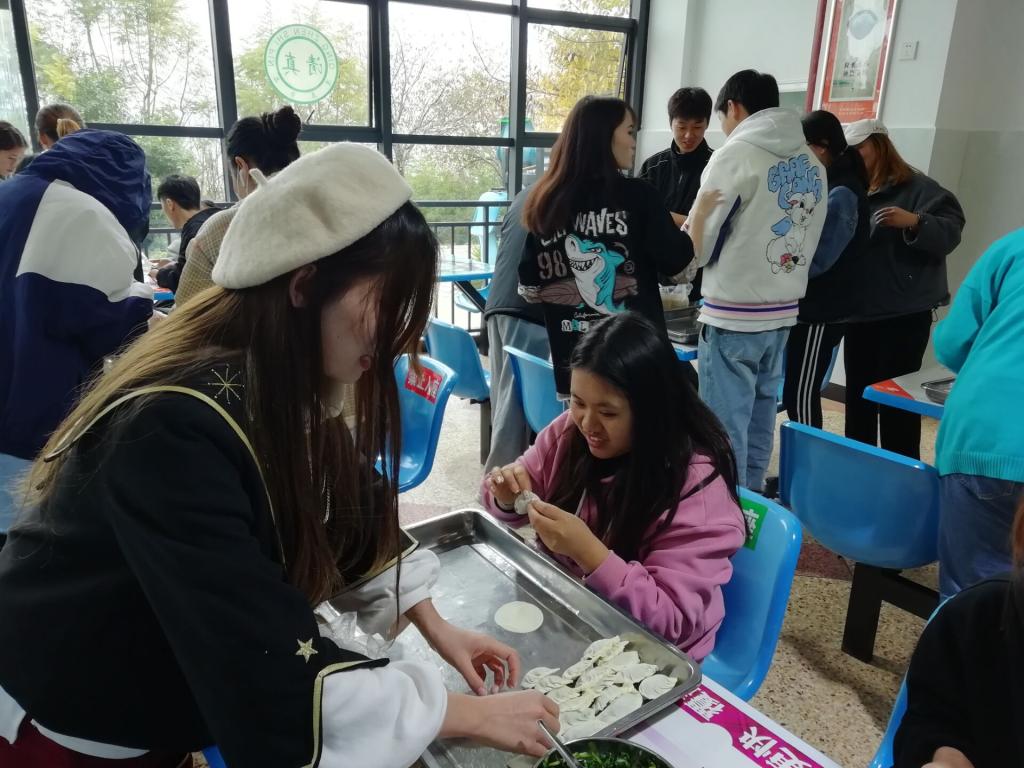 活动还未开始前,已经有同学陆陆续续的到达活动地点,每个人脸上都洋溢着对包饺子的渴望及对冬至来临的满腔热情。活动中,同学们积极参与其中,互相帮助,各显其才,饺子形状有奇形怪状的,有四四方方的,包好一盘就拿去蒸一盘。最后经过全体同学的努力,一个个热气腾腾的饺子出来了,大家坐在座位上,分享着自己包的饺子,在欢声笑语中,畅谈自己包饺子的感想及活动带来的意义。同学们本着不浪费的原则,把自己包好吃不完的饺子打包带回给同宿舍的舍友吃,同时也让他们了解冬至吃饺子的习俗。