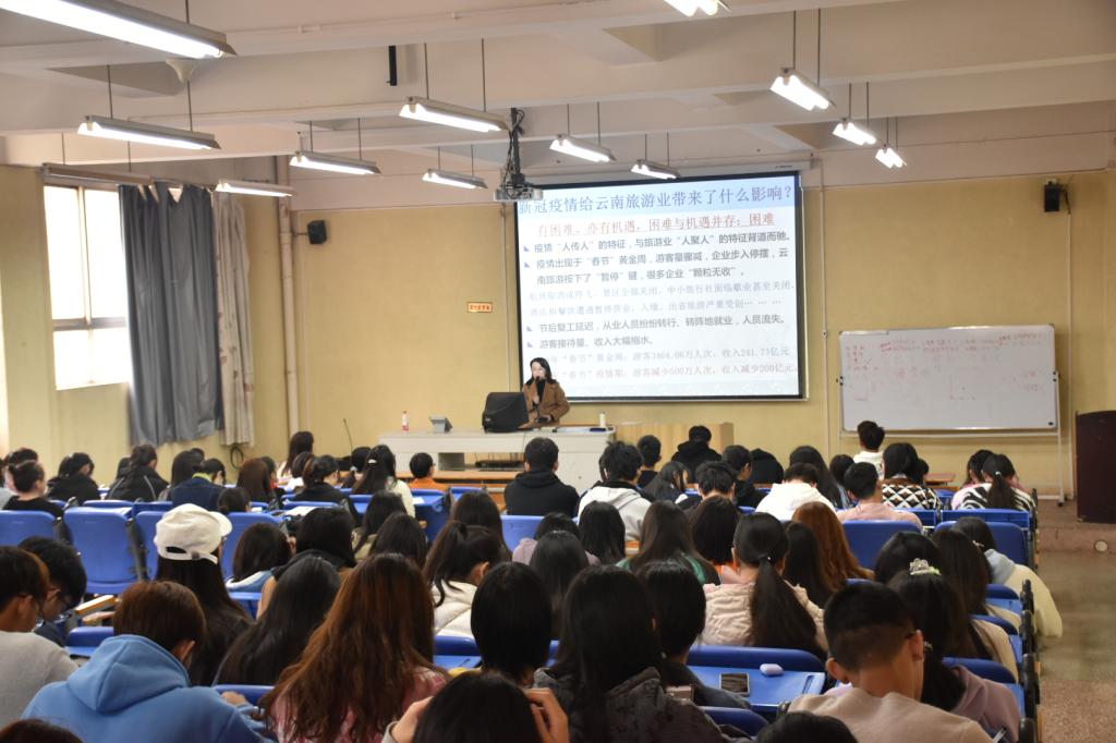 此次讲座杨家娣副教授以云南旅游服务业的变化为开端,展开的向我们介绍了云南旅游七个方面二十二条的内容,提出了新冠疫情后云南旅游业的发展是困难与机遇并存的观点,并以“疫后云南旅游业将何去何从”的问题,详细的介绍了禄丰世界恐龙谷、天下第一长联——大观楼长联中记载的滇池四周景观及云南的历史、中国唯一一座没有城墙的古城——丽江古城及云南的三宣司等历史文化资源,以及美名天下的奇观——三江并流、东方的多瑙河、汹涌壮阔的怒江V型大峡谷、美妙奇幻的地貌景观九乡溶洞、泸西阿庐古洞等、还有日照金顶的梅里雪山、玉龙雪山及独树成林等奇特的自然环境资源,还讲述了丰富多彩的民族文化资源,有世界上唯一现存的原始母系氏族社会泸沽湖摩梭人的“阿夏走婚”、富含人生哲理的白族“三道茶”、中国音乐的“活化石”丽江纳西古乐及世界上最长的宴席——哈尼族长街宴等。最后,杨副教授针对疫后云南旅游的发展,给出了我们应依靠中国的新“四大发明”——支付宝、高铁、共享单车、网购来发展旅游业。