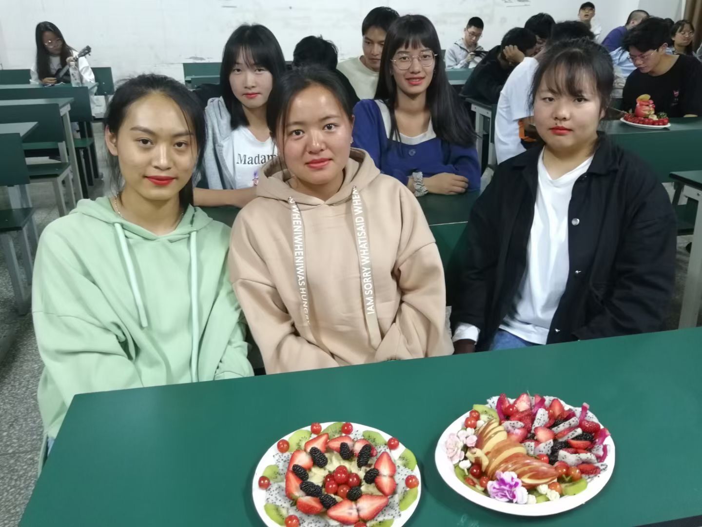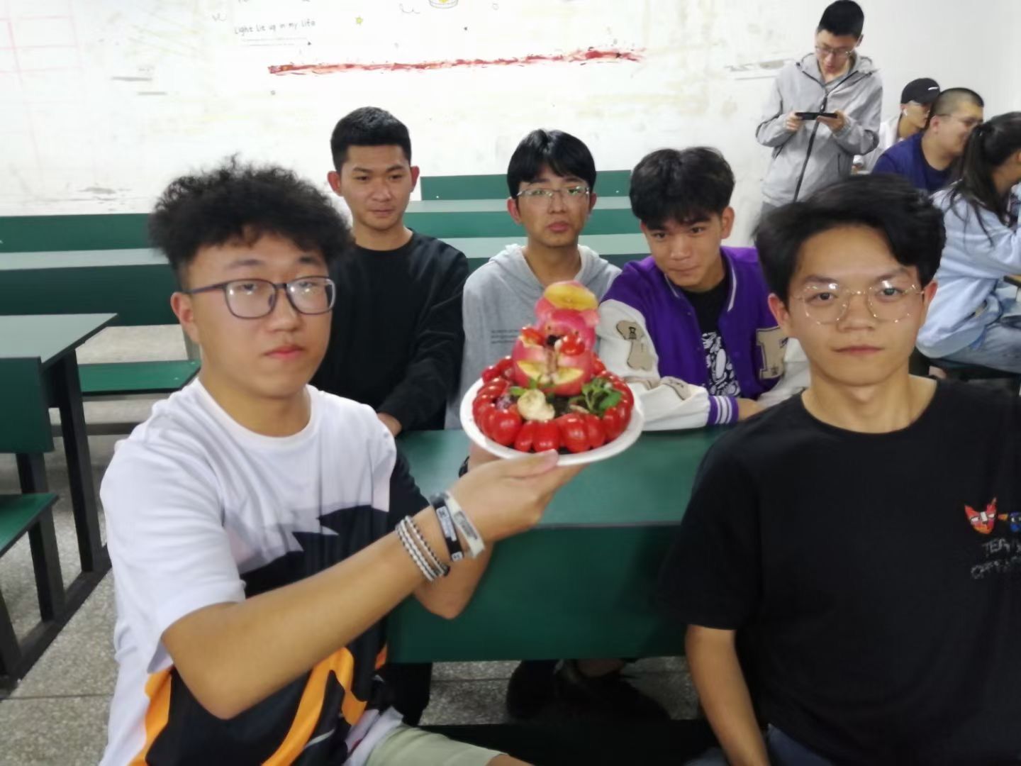 水果摆盘环节,同学们以宿舍为单位一起完成水果摆盘设计,不在同一间宿舍的同学也临时组队用不同的水果摆出了一种动物,象征着虽然他们没有在一个宿舍也还是能够团结起来,正如各族人民大家庭的紧密团结。