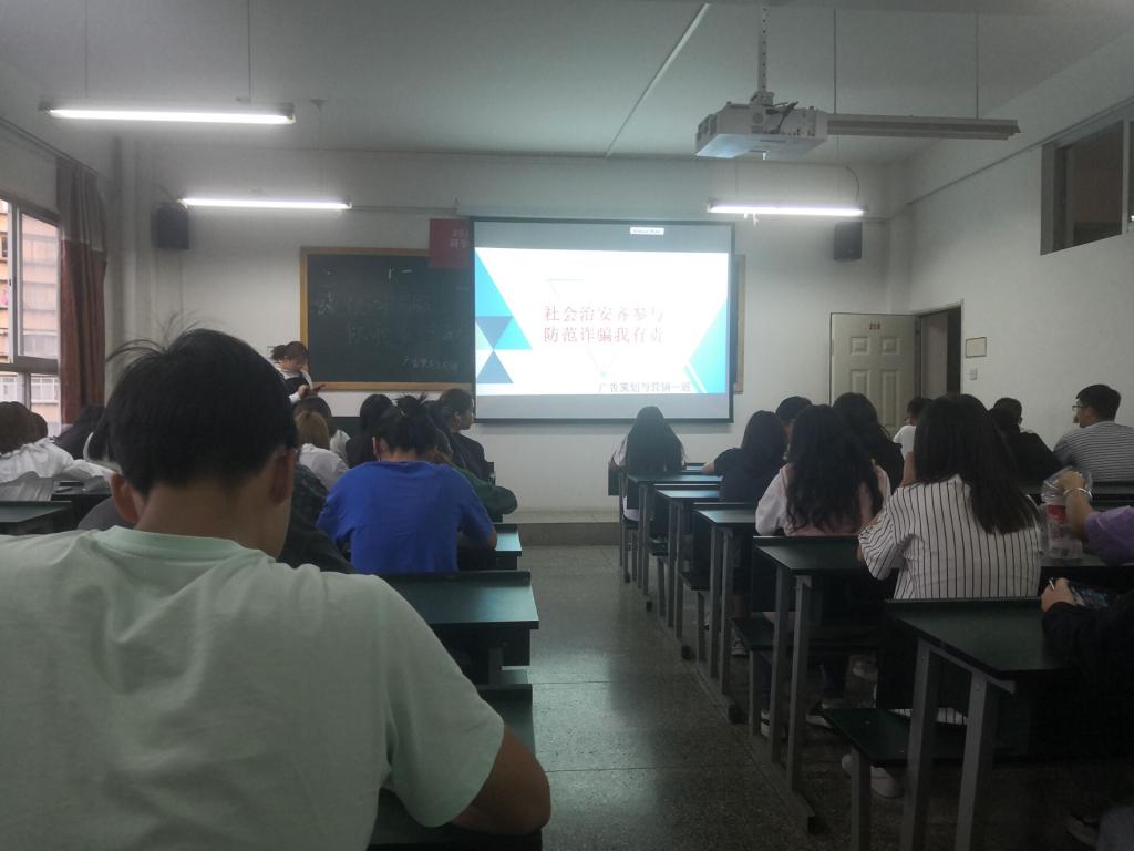 此次活动中,采取与班主任连线的方式进行,首先由班主任陆祥老师用事例向我们讲述诈骗方式,告诫同学们“不管诈骗手段如何改变一定要看清诈骗的本质! ”提醒同学们提高防范意识,遇到电话或者网络诈骗采取不理会或者举报的方式,特别注意校园贷,切莫因贪小便宜的心理而遭受损失。遇到事情切莫鲁莽行事,先问问自己天上是否会掉馅饼,如果真掉馅饼为什么是自己。随后,给同学们放映了一部防诈骗的宣传片,视频中各种生动真实的案例让同学们对于诈骗的形式和常用手段有了充分的了解,提高了同学们的对于诈骗的认识。