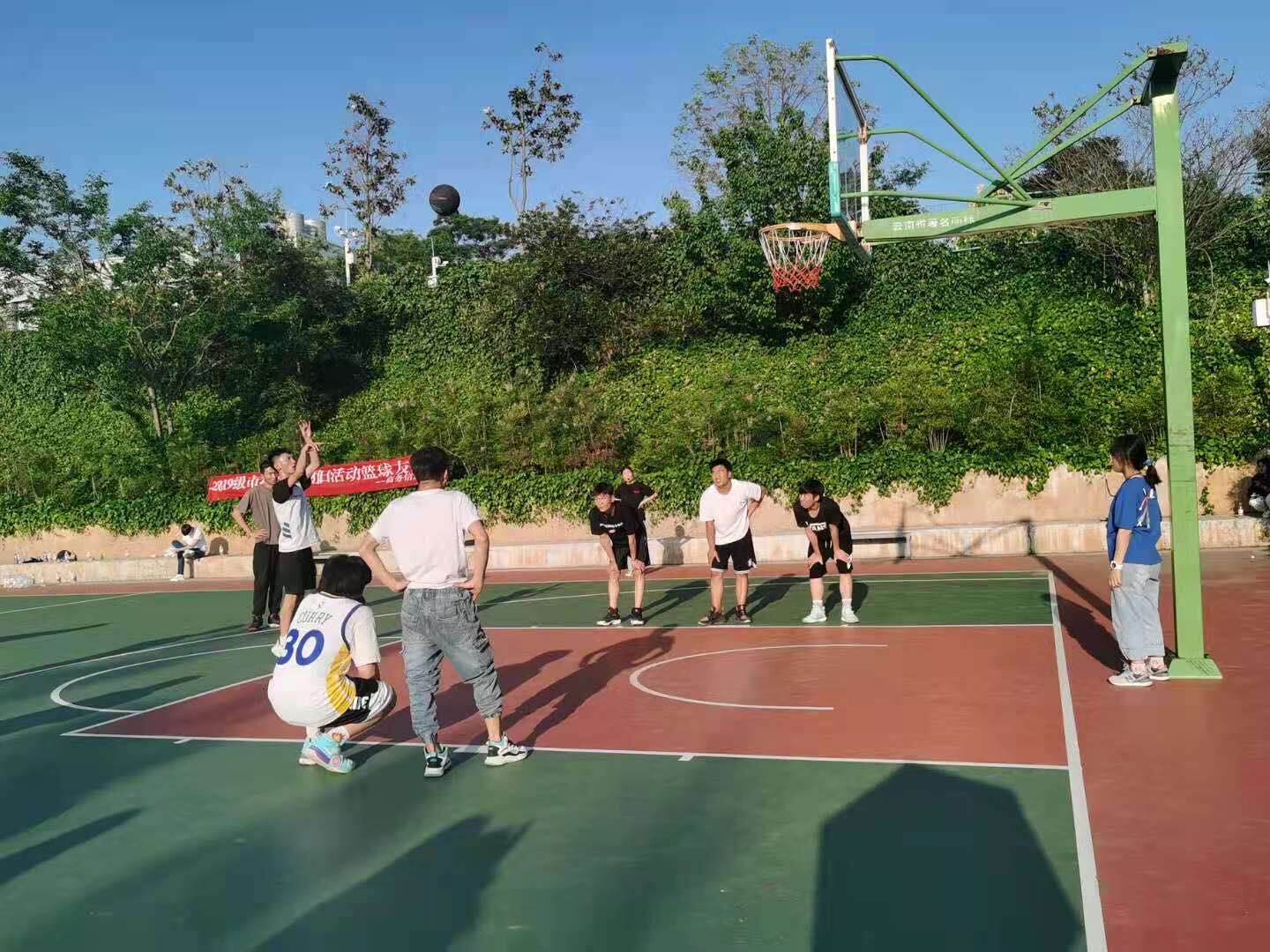 比赛正式开始2019级市营2班的队员便主动出击,以矫健熟练的动作迅速传球,直逼篮板,1、4班队员也不甘示弱,抵死防守,不分伯仲,比赛十分激烈。尽管1、4班才开始就稍微领先2、3班,他们也并没有因此掉以轻心,而是相互配合,趁胜追击,比赛正在如火如荼的进行。随后,比赛下半场也开始了,开场不到十分钟比分就已经达到了24:22,在班级同学的加油助威下,比赛最终以64:62 的成绩圆满结束 ,1、4班以 2 分之差在下半场落后于 2 、3班。这是一场炎炎烈日下的友谊比赛,也是一场不同于往日的团日活动。
