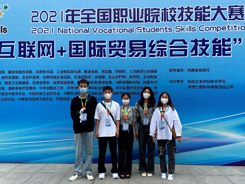 2021年6月9日,来自商务信息院2019级的员工梅祖康、夏宏伟、杨娅、施婉婷代表云南省赴咸阳参加2021年全国职业院校技能大赛,赛项为互联网+国际贸易综合技能。