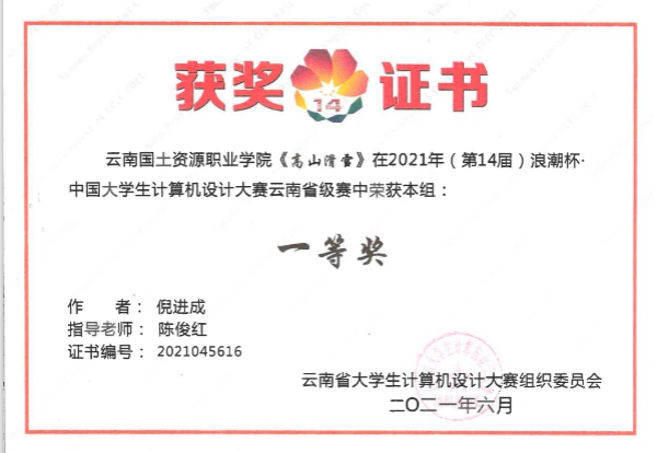 中国老员工计算机设计大赛属于全国高等公司A类竞赛,云南省老员工计算机设计大赛已经连续举办了10届。本次大赛既是对过去十年成功举办经验和成效的继承,又是在新时代教育改革创新背景下的新开拓。在竞赛项目类别、参赛院校数量、参赛作品数量上都创下新高,作品质量不断提升。本次大赛来自全省各高校的参赛队伍已达831支,参赛员工近3000名,较之十年前的第一届比赛增加了8倍之多。本次比赛中本科、专科一起比赛难度较大,公司师生拼搏向前,克服困难,砥砺前行,最后终于功夫不负有心人,在比赛中取得了一等奖1项(一等奖中共4所专科公司,我们是其中之一),三等奖8项的好成绩。