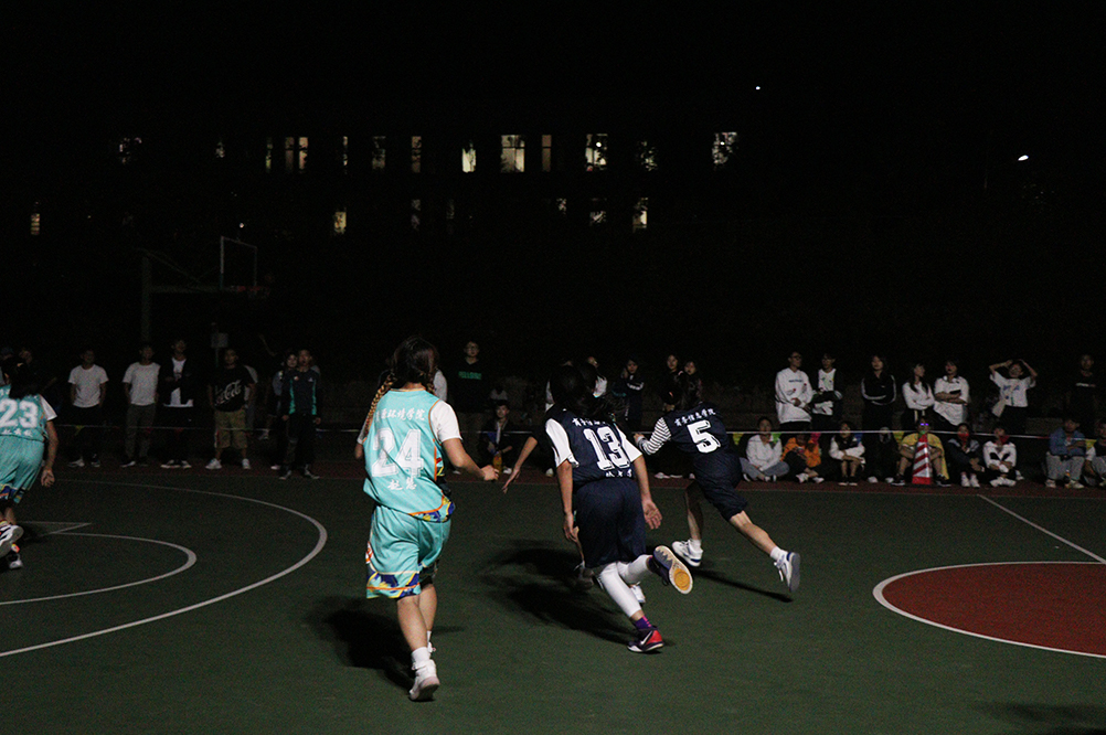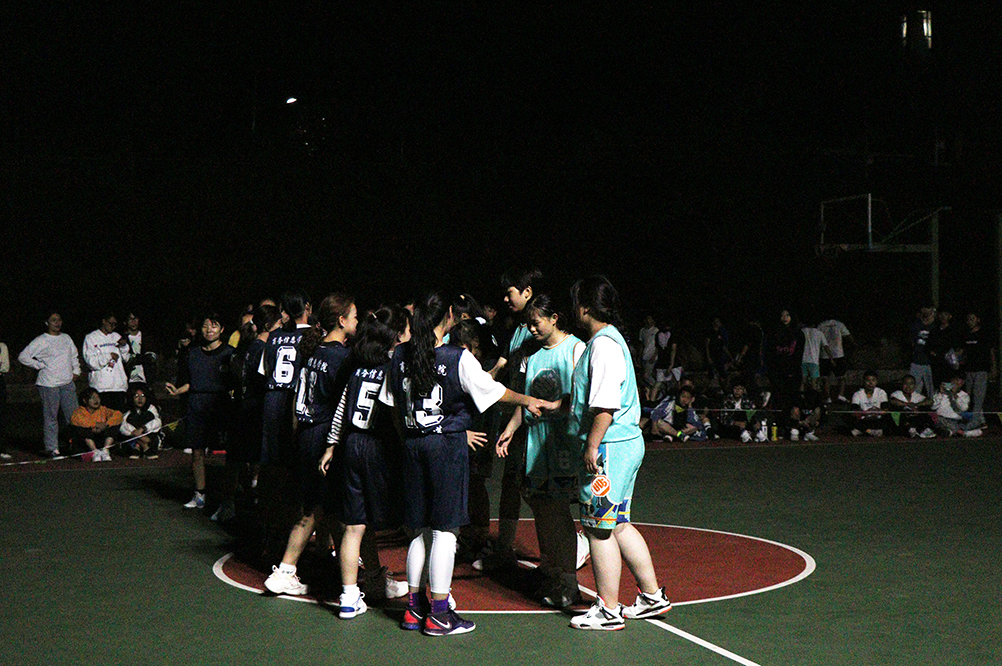 男队比赛结束时,场上已经亮起了灯,寒风不断袭来,却将同学们的斗志吹得愈发激昂。又一场啦啦操后,女队上场。一开始稍有失误,但女队同学韧性十足,一次次被投球被阻后又一次次将球抢回,并未垂头丧气消极比赛,不断拿分,虽然最后依然没能取得胜利,但她们的拼搏精神令人敬佩。