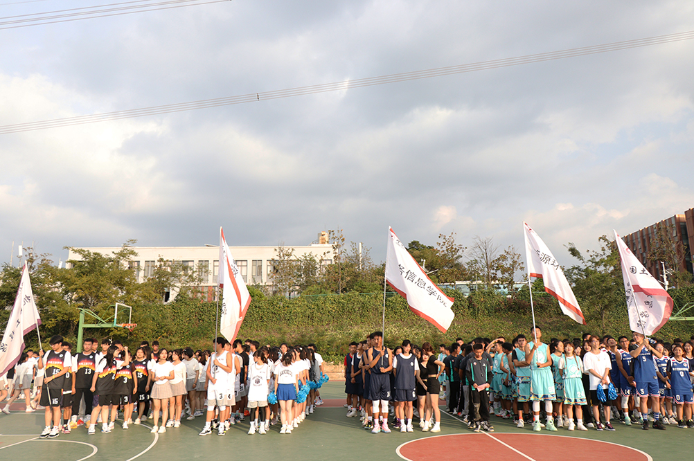 篮球场外人声鼎沸,篮球场内的同学们肆意挥洒着汗水,将夕阳也衬的热闹起来。由校团委主办、校员工会和社团联合会共同承办的太阳成tyc122cc2021年“迎新杯”篮球赛于昨日17:30在阳宗校区正式开幕,由太阳成tyc122cc篮球队代表公司出赛。