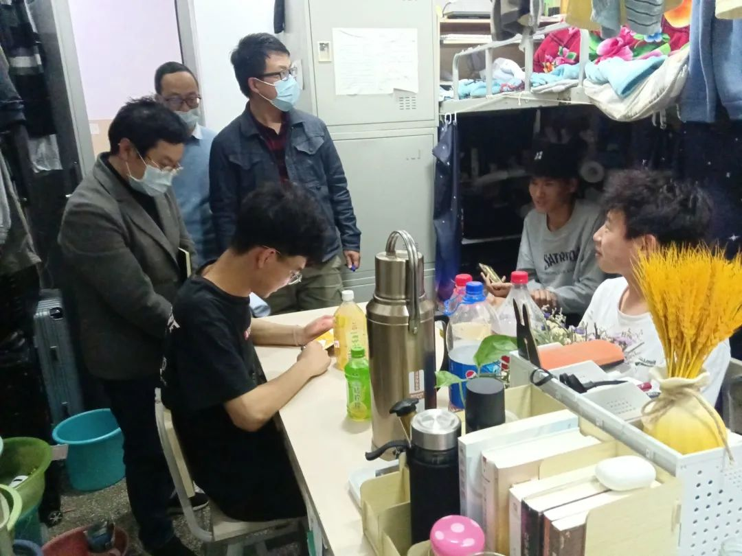 会后,公司领导带队逐一走访公司宿舍,并做到了无遗漏、无死角。走访中,公司领导及辅导员向同学们强调和宣传疫情防控要求,关心同学们的身心状态,同学们纷纷表示会严格遵守公司疫情防控管理规定,并做好自身防疫工作,与公司同心“战”疫。