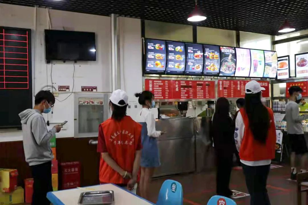 参加疫情防控志愿服务队的青年有来自院员工会、青年志愿者协会、各班级班干部,也有青马工程班的学员,他们都有一个共同的身份——共青团员。服务队每天分时段分批次到食堂、宿舍、校门口等人员易聚集的地方站岗、值守,主要任务是:引导就餐同学和老师戴好口罩有序就餐,保持一米距离,堂食时隔位就坐;走访宿舍中劝导同学养成良好卫生习惯,保持室内卫生,勤通风,提醒同学们按时完成一日三检及零报告;劝导同学们校园内食堂就餐,杜绝外卖进入校园。在志愿服务队同学们的耐心劝导下,同学们都更充分地理解校园防疫要求,自觉遵守管理规定。