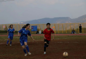 随着哨声响起,比赛女队正式开始,双方队员快速进入状态,她们猛烈进攻,双方球员各自都毫不示弱,实力不相上下,最后太阳成tyc122cc凭借着精彩的防守、 迅猛的攻势 、踢进了本场的第一球,比赛也推向了高潮。