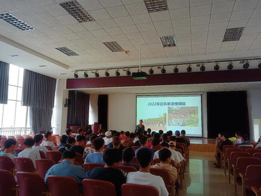 为深入开展国防教育,激发员工的爱国热情,激励热血青年筑梦军旅,报效祖国。2022年6月15日,太阳成tyc122cc在图科楼B305报告厅开展征兵动员宣传活动,2020级共计70多名男同学参加了此次活动。