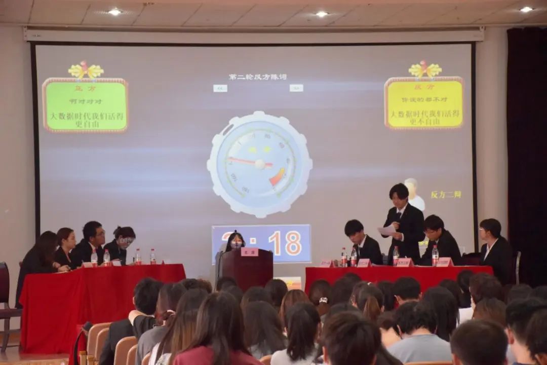 比赛伊始,主席介绍了到场的评委与参赛的辩队后,辩论赛正式拉开帷幕。正方以“大数据时代我们活得更自由”慷慨陈词,简洁凝练又不乏深刻全面的阐述;反方则认为“大数据时代我们活得更不自由”陈词也是字字珠玑,掷地有声。经过激烈的辩论后,正方取得了本次辩论赛的胜利。最后方荣老师对辩论赛进行了专业的点评,提出辩手存在的不足的同时还给予了辩手改进的建议。