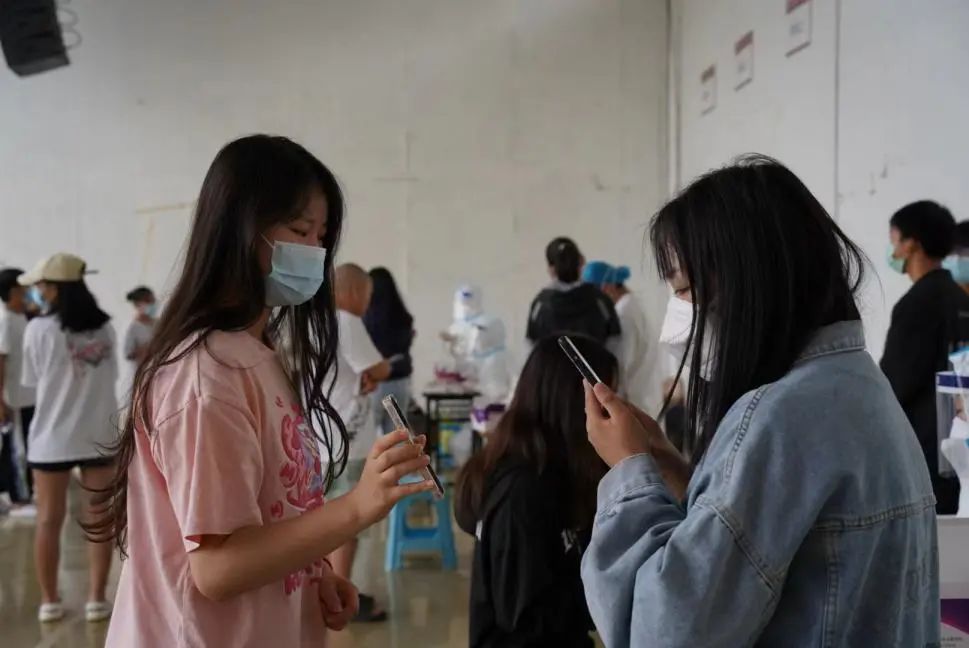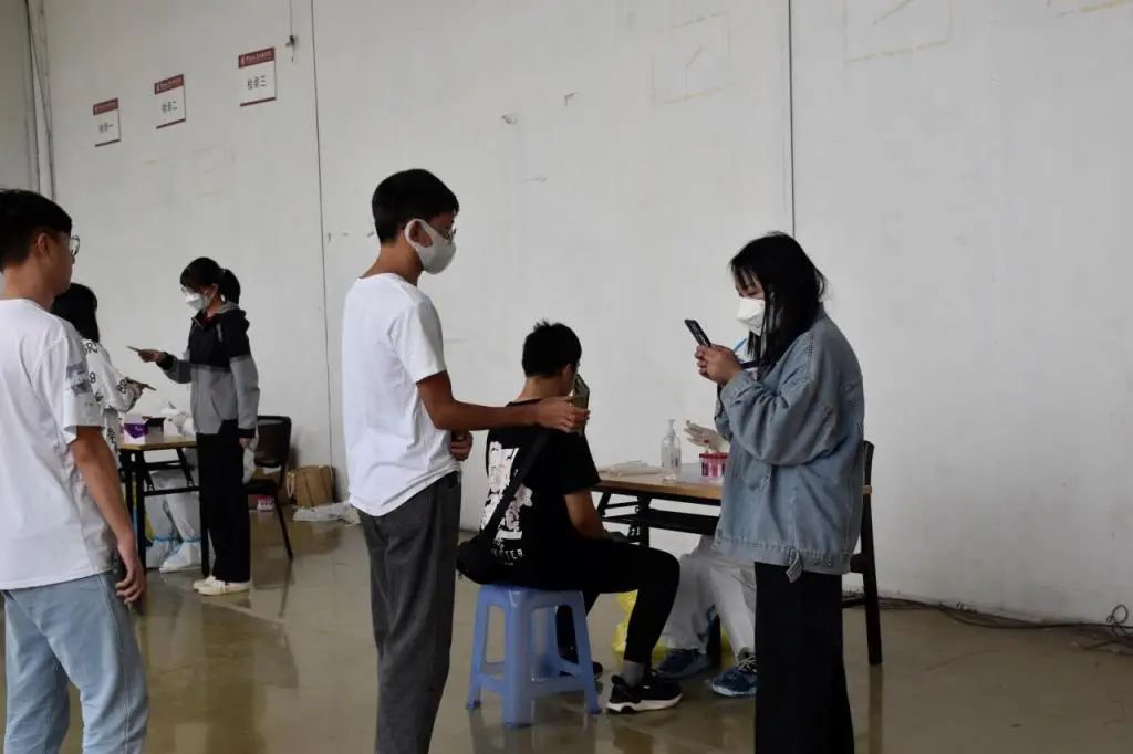 核酸检测现场同学们井然有序,佩戴好口罩,按班级排队,保持一米线距离在等待做核酸。同时,员工会的志愿者们 也在细心的帮助同学们扫码登记、采集信息、维护现场秩序。还有耐心的医务人员,不辞辛劳,温柔耐心的为大家采集咽拭子。同学们按照指引,在完成检测后有序离开。此次核酸检测进行得十分快速且顺利。