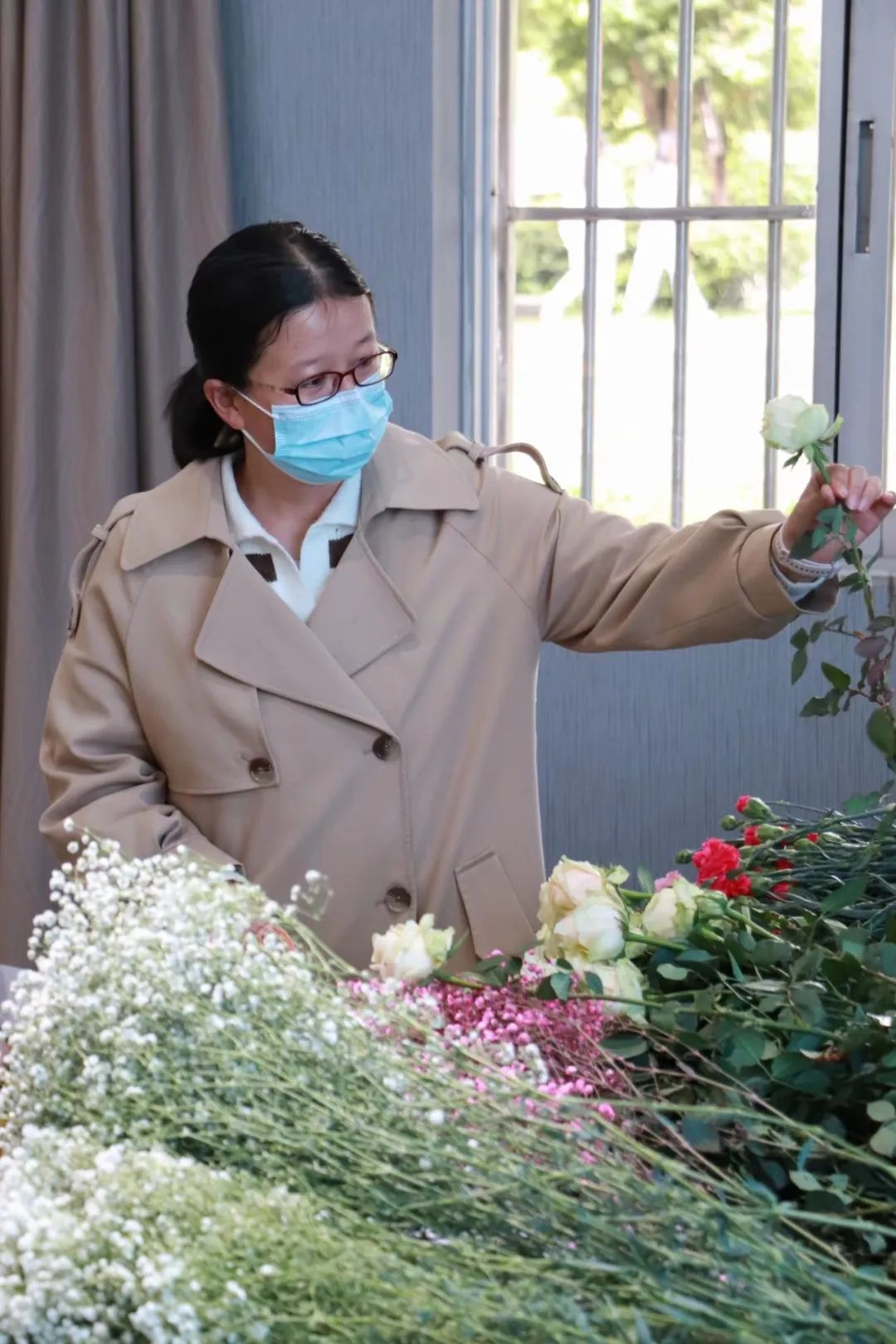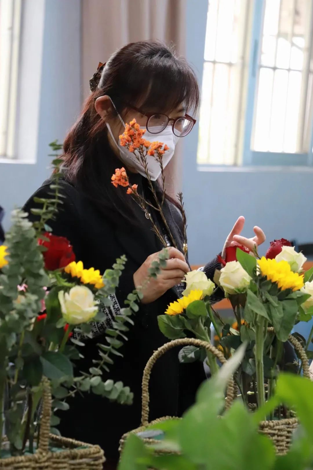活动现场,女老师们把桌子上的花材打理分类,用心挑选,用自己的创意和技巧将它们变成了一件件精美、充满生命力的花束。活动深受女教职工们的欢迎,期间大家还一起品尝准备好的甜点,分享插花心得和手捧自己的插花作品合影留念。整个活动氛围温馨和谐,充满了幸福感和团结力量。