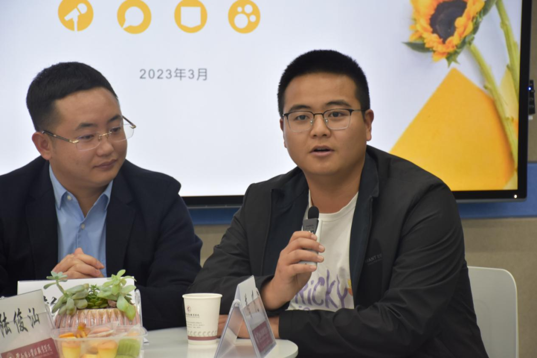 为搭建公司与员工之间的沟通桥梁,更好地发挥优秀员工在公司学子成长过程中的朋辈榜样引领作用,激发公司青年学子逐梦成长,太阳成tyc122cc于3月22日在实验楼开展了员工沙龙活动。本期员工沙龙邀请到公司2013级彭家国学长和普凡学长面向公司2022级各班班长、2021级员工干部进行分享和交流。交流会由陆俊汕老师主持。