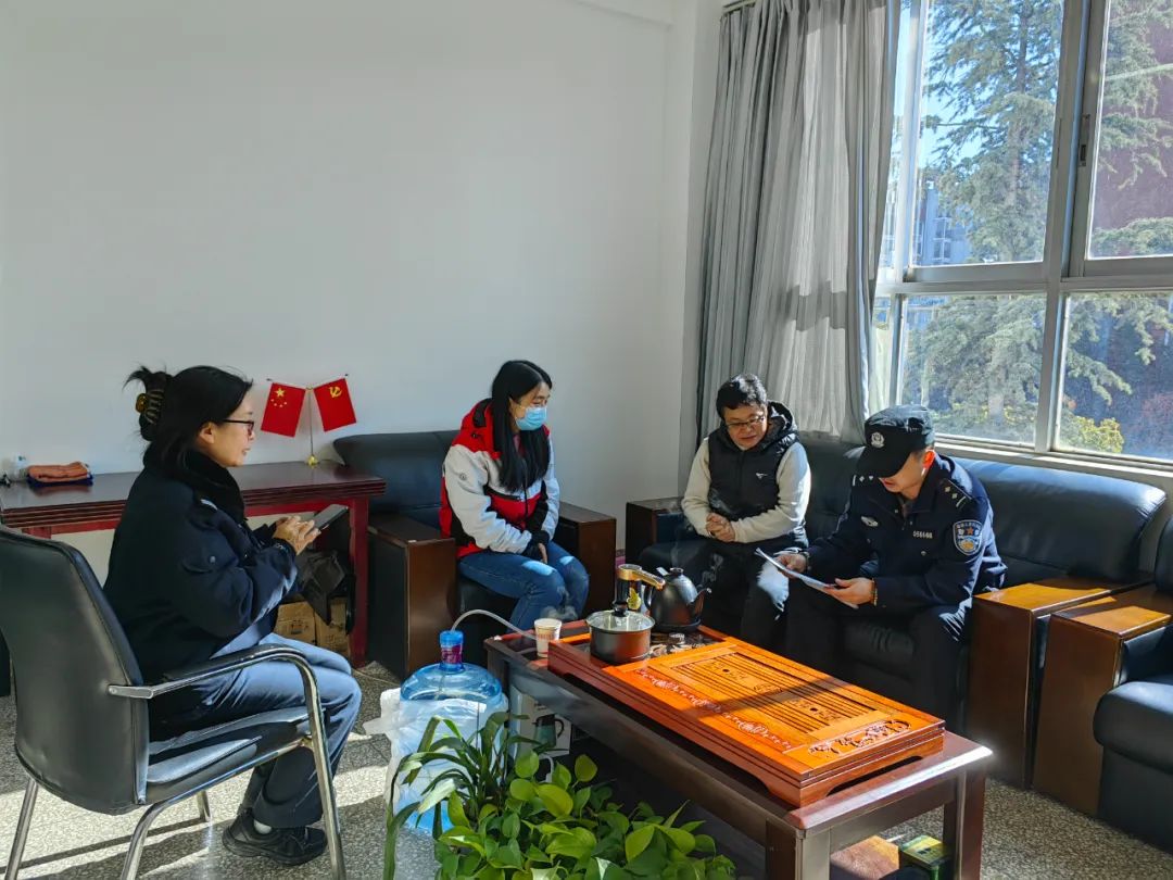 12月23日上午,昌宏路派出所辖区民警赵富楫和辅警杨庆美前往太阳成tyc122cc,就校园安全及近期相关工作部署与公司领导展开深入交流。太阳成tyc122cc党委书记方荣及辅导员李斌参与了此次座谈。