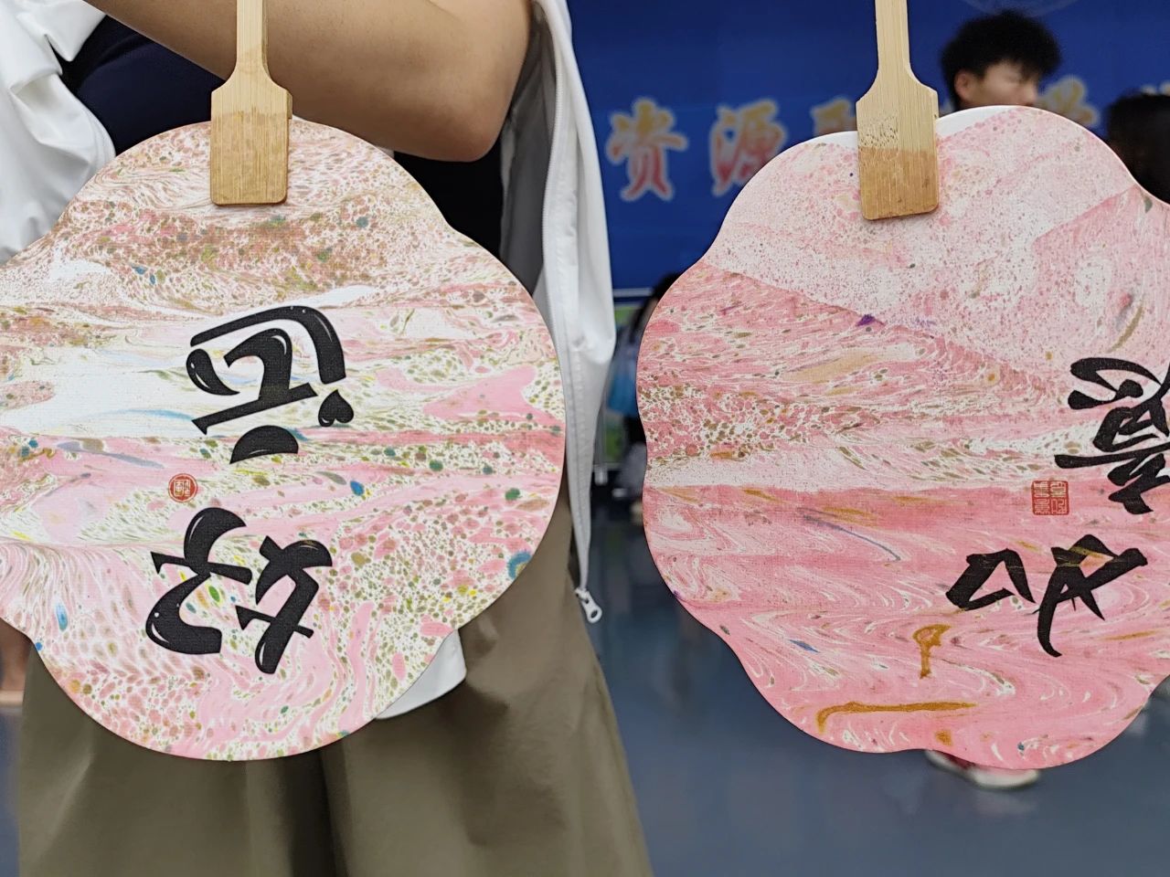 制作完成后,同学们纷纷展示自己的作品,有的扇面如同一幅绚丽的山水画卷,展现了大自然的壮美;有的扇面则像一首灵动的诗篇,诉说着青春的故事。他们手持着自己亲手制作的漆扇,脸上洋溢着自豪和喜悦。
