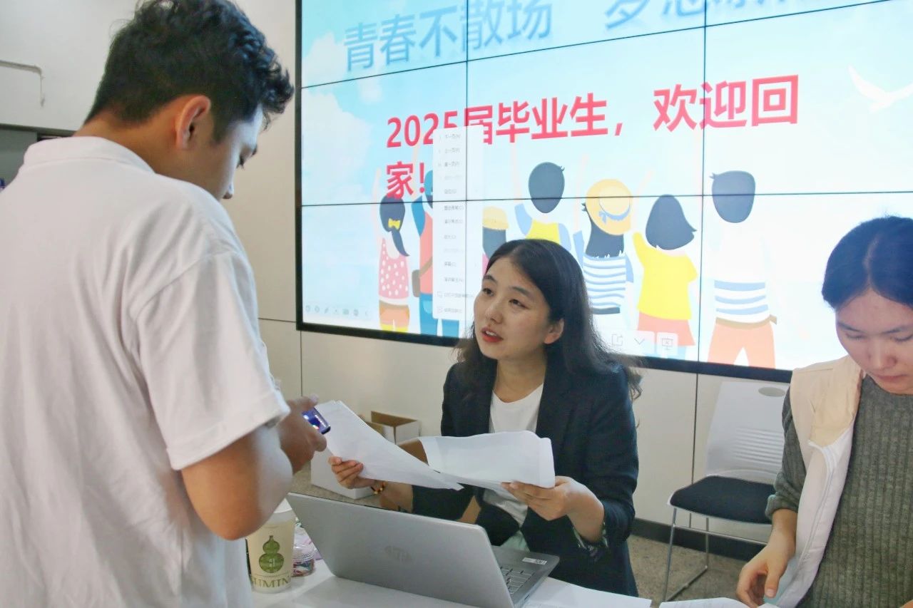经开校区实验楼大厅内,离校手续办理暨毕业证发放工作有序进行。辅导员们细致核对信息,志愿者们耐心解答疑问。“请带好您的毕业证”“有任何问题随时找我们”,温暖的话语与忙碌的身影,勾勒出公司对毕业生的最后一程守护。从流程设计到细节服务,每一个环节都凝聚着师生间的深厚情谊。