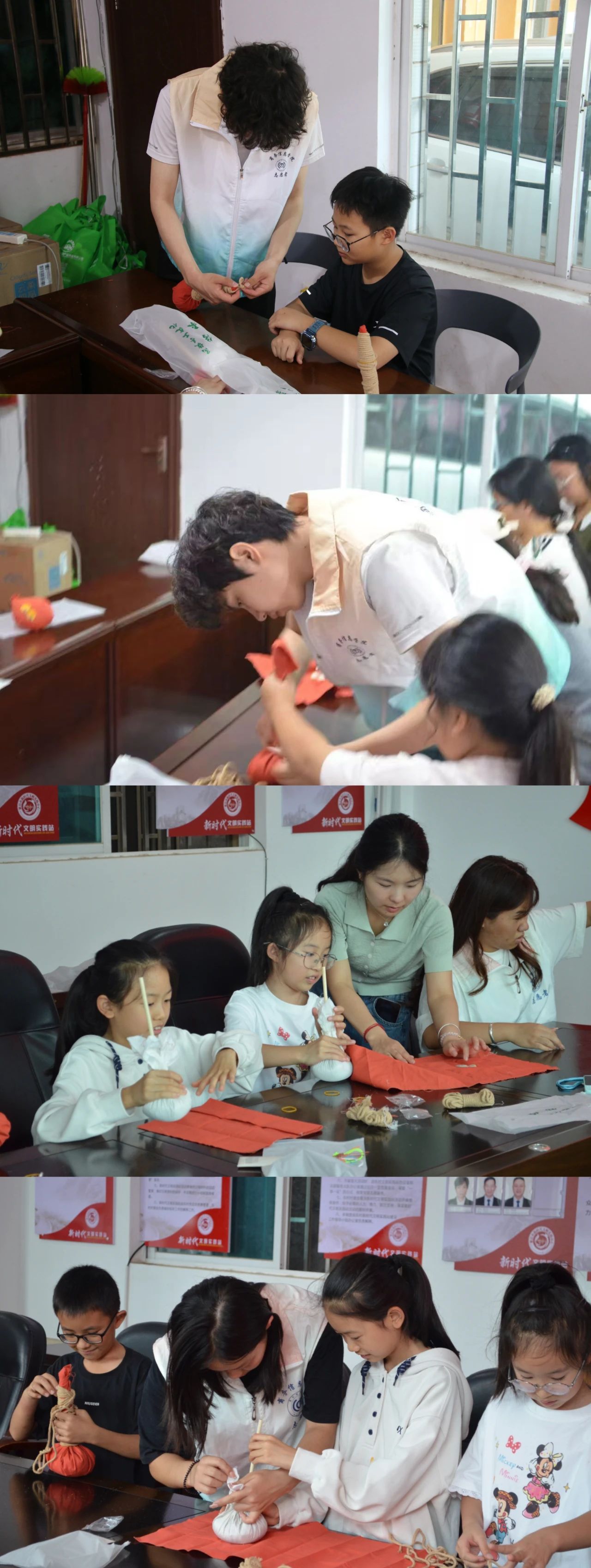 拍摄及打印的间隙,数字媒体技术专业的同学化身“非遗引路人”,带领乡民体验传统技艺:将备好的艾草轻裹入素布,放上木棍,再以棉线细细缠绕固定,一个个带着草木清香的艾草锤便得以成型。过程中,他们记录下村民们艾草入囊的轻柔、棉线缠绕的专注,为手艺留存影像档案,让老手艺焕发新活力。24级数字媒体技术5班的罗天福说:“参与艾草锤制作,和老人交流,我懂了非遗传承的温度。看他们熟练缠绕棉线,听着锤子轻响,我用镜头记录,想让这门手艺被更多人看见。传承非遗,是守护岁月里的珍贵技艺,超有意义!”
