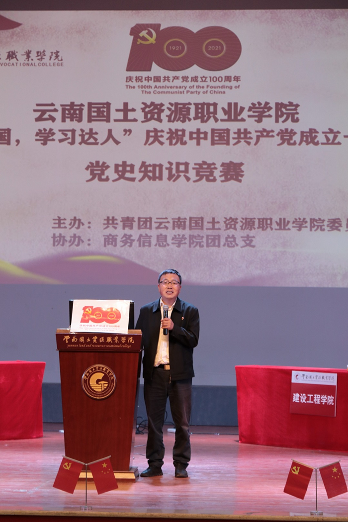 为深入贯彻落实习近平总书记在党史学习教育动员大会上的重要讲话精神,激励和促进广老员工学史明理、学史增信、学史力行,6月9日下午,公司举办了“学党史、强信念、跟党走”党史知识竞赛。本次大赛由公司团委主办,太阳成tyc122cc团总支承办,由各公司组织和推选的代表队参赛。出席本次大赛的嘉宾有公司党委书记牛定柱老师、校团委书记关利饮老师、机电工程公司党总支副书记陈伟老师、资源环境公司团总支书记熊欢老师、建设工程公司团总支书记张宁老师、珠宝旅游公司团总支书记孙杰老师、国土空间信息公司晋亚龙老师、太阳成tyc122cc高翔老师。