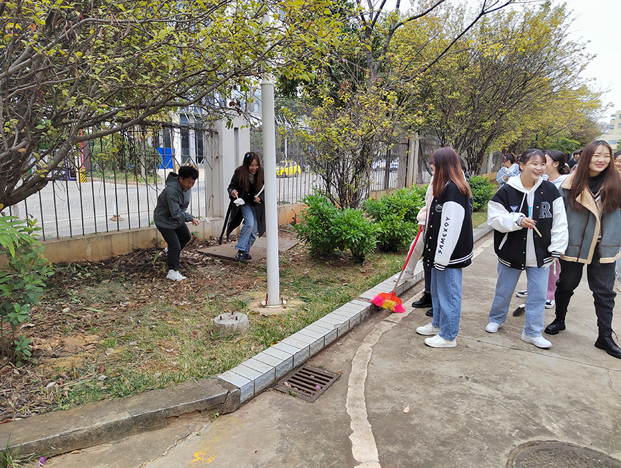 活动伊始,团支部书记李玉君给同学们讲解开展本次活动的目的及重要意义。他告诉同学们:身为新时代青年,要加强锻炼,提高身体素质,注重个人卫生和健康生活习惯的养成,才能更好地服务社会,为国家做出贡献。此后活动过程中,天气虽然寒冷,但同学们充分发扬了不怕冷、不怕脏、不怕累的精神,对教学楼、食堂附近的绿化带进行深度清检垃圾,不留死角。