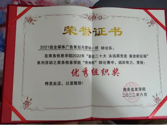 在2021——2022学年,21级广告一班团支部荣获“五四红旗团支部”称号以及团日活动院级三级立项,1名团支部干部荣获“优秀团干部”称号,1名团员荣获“优秀共青团团员”称号,4名团支部成员所在宿舍被评为院级“文明宿舍”,过半的团支部成员在院级团总支员工组织任职。该团支部同学们心怀壮志,为更好地建设团支部而共同努力,使得该团支部团队协作能力不断增强。