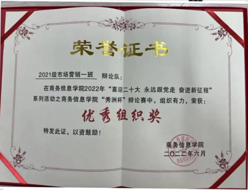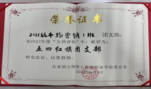 21级市场营销1班团支部在公司团总支的正确引领和全体成员的共同努力下,21级市场营销1班团支部荣获校级“五四红旗团支部”。