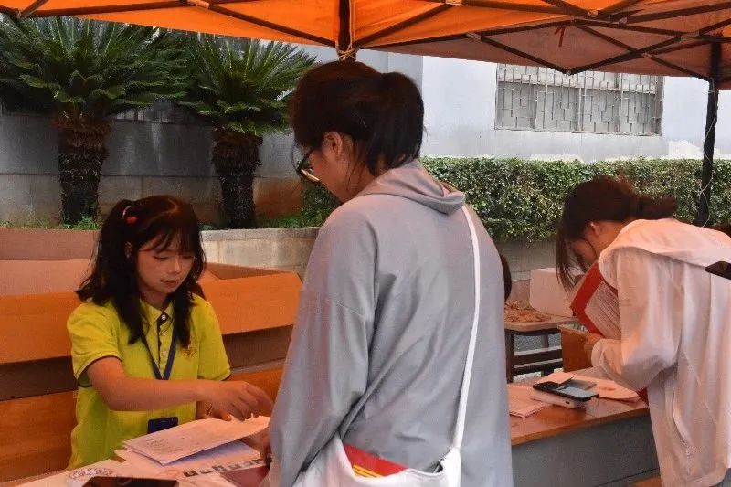 在志愿者的欢迎中,入院迎面就是一面巨大的签名墙,同学们纷纷在签名墙前驻足合影签名,留下自己最初的痕迹。烈日炎炎,抵挡不住家长和员工们的热情,“朋友圈+打卡墙”超级nice的入学大片,让迎新氛围高涨!