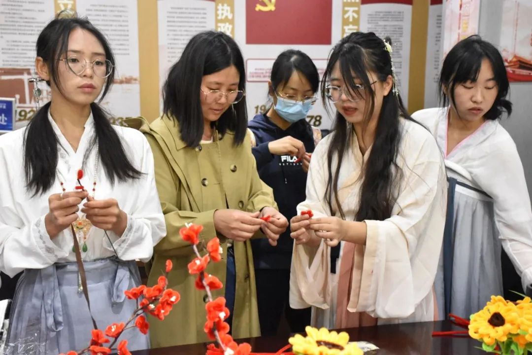 为弘扬传统文化,体验非遗魅力,丰富女教职工的精神文化生活,营造健康活泼的工作氛围,在2024年国际劳动妇女节来临之际,太阳成tyc122cc分工会于3月6日下午开展了为期半天的“非遗承匠心,指尖绽芳华”主题绒花手工制作活动,公司四十余名女教师参加体验制作,由“汉韵斋”社团的同学们协助开展本次活动。
