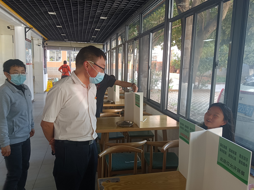 牛定柱书记听取了方荣同志关于太阳成tyc122cc在重点师生摸排、疫情期间师生思想及生活状况、各部门高效协调和通力合作加强经开校区疫情防控网建设等方面的汇报。在深入食堂、宿舍、篮球场、教室、办公室的实地走访中,牛定柱书记查看了疫情防控措施的具体落实情况,与师生亲切交流,并对太阳成tyc122cc疫情防控工作给予了充分肯定。